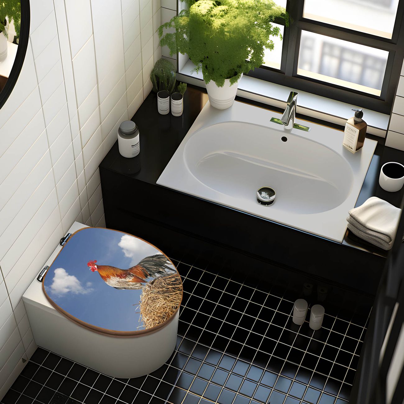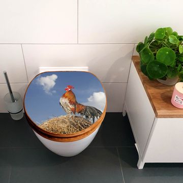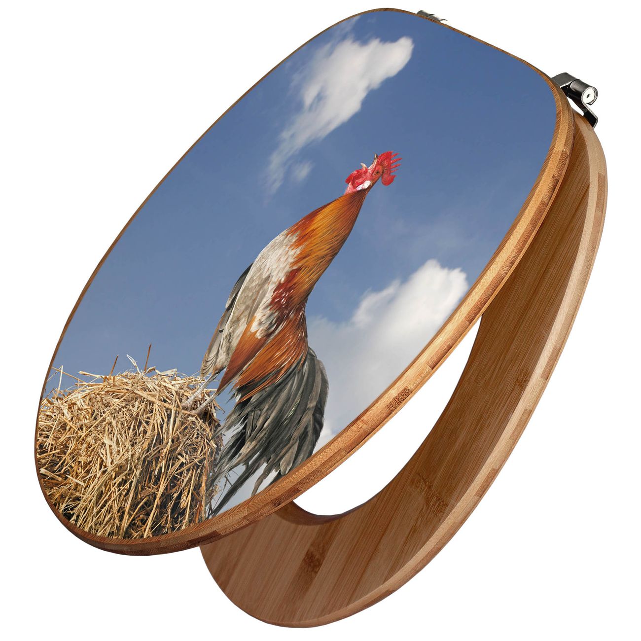 Design WC-Sitz Bambus Holz Motiv Hahn