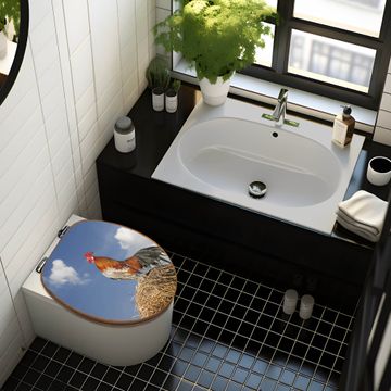Mit dem banjado Toilettensitz in Bambus verbinden Sie Design und Funktionalität. Sie erhalten den WC-Sitz mit bewährt schwerer Holz Qualität und Universal Scharnieren. Das Motiv Motiv Hahn besteht aus einer schutzlaminierten Motivfolie, die durch das Schutzlaminat zusätzlich vor Kratzern schützt. Durch diesen Motivdruck wird der WC-Sitz zu einem Blickfang in Ihrem Bad.