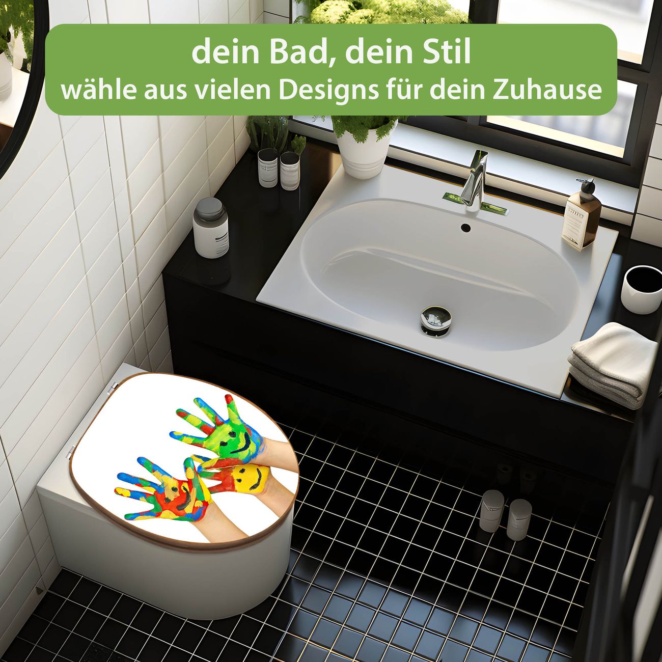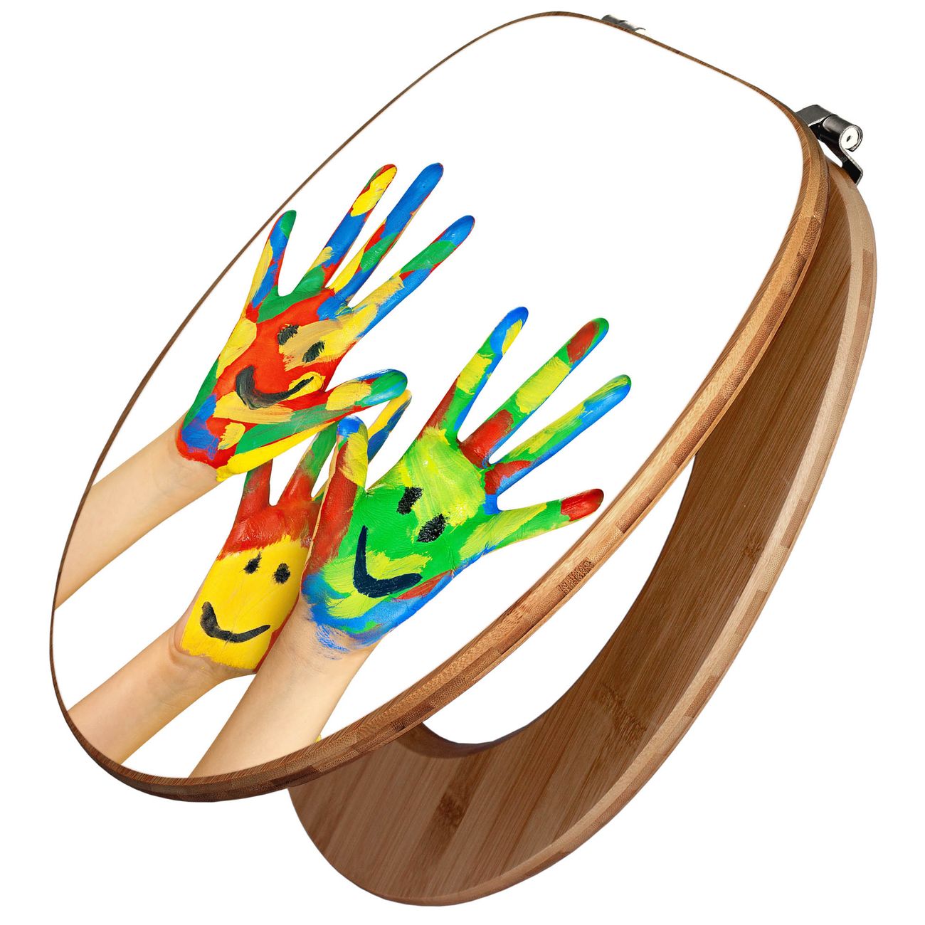 Design WC-Sitz Bambus Holz Motiv Happy Hands