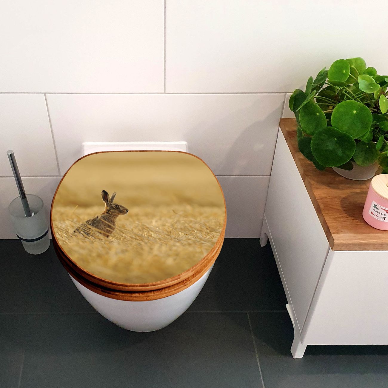 Design WC-Sitz Bambus Holz Motiv Hase