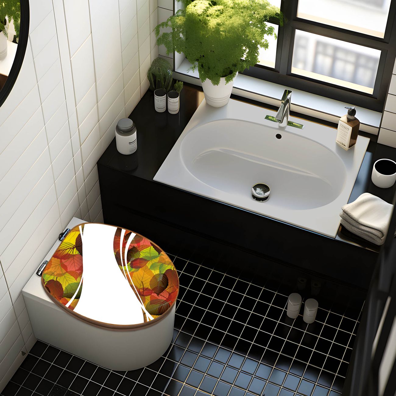 Mit dem banjado Toilettensitz in Bambus verbinden Sie Design und Funktionalität. Sie erhalten den WC-Sitz mit bewährt schwerer Holz Qualität und Universal Scharnieren. Das Motiv Motiv Herbstlaub besteht aus einer schutzlaminierten Motivfolie, die durch das Schutzlaminat zusätzlich vor Kratzern schützt. Durch diesen Motivdruck wird der WC-Sitz zu einem Blickfang in Ihrem Bad.