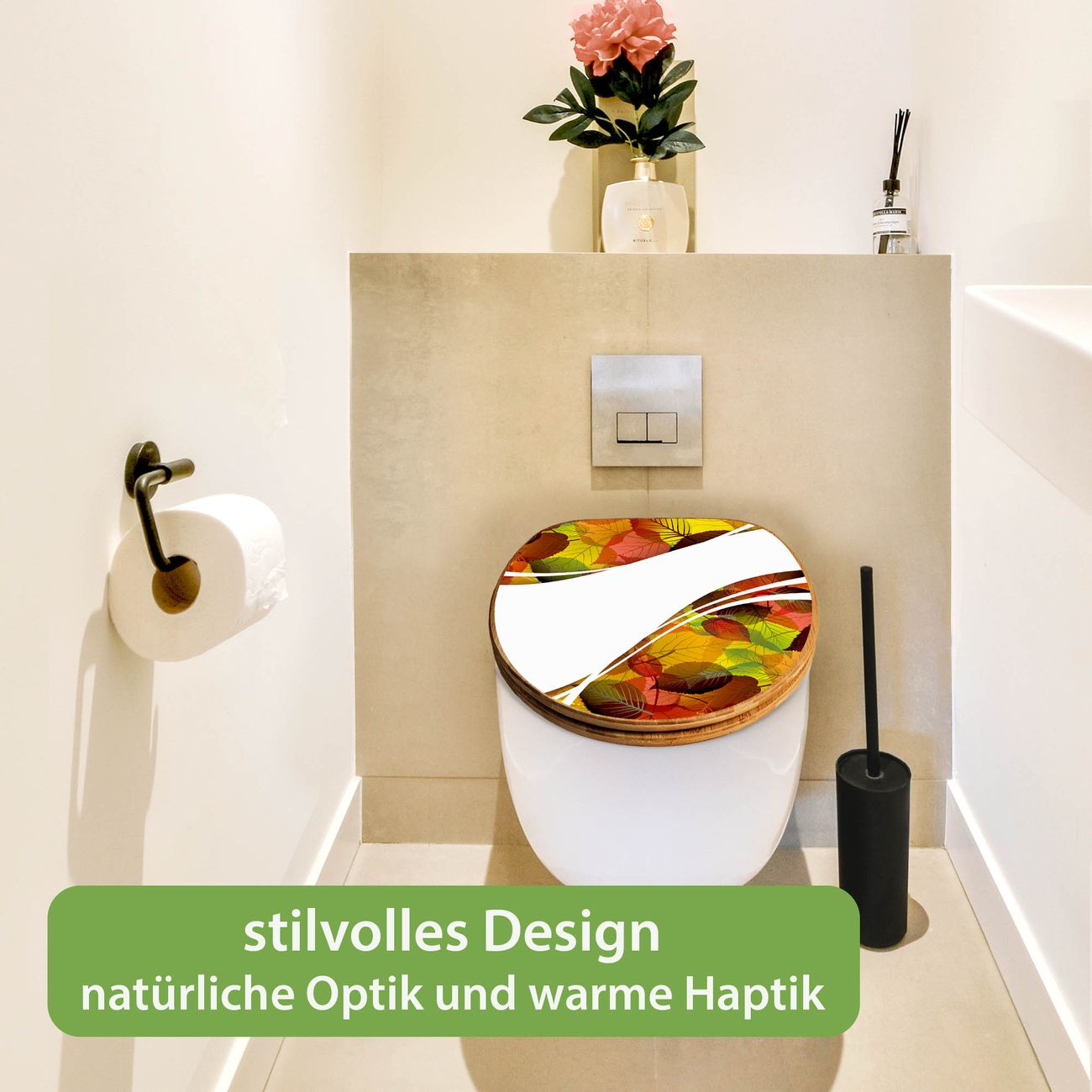 Design WC-Sitz Bambus Holz Motiv Herbstlaub