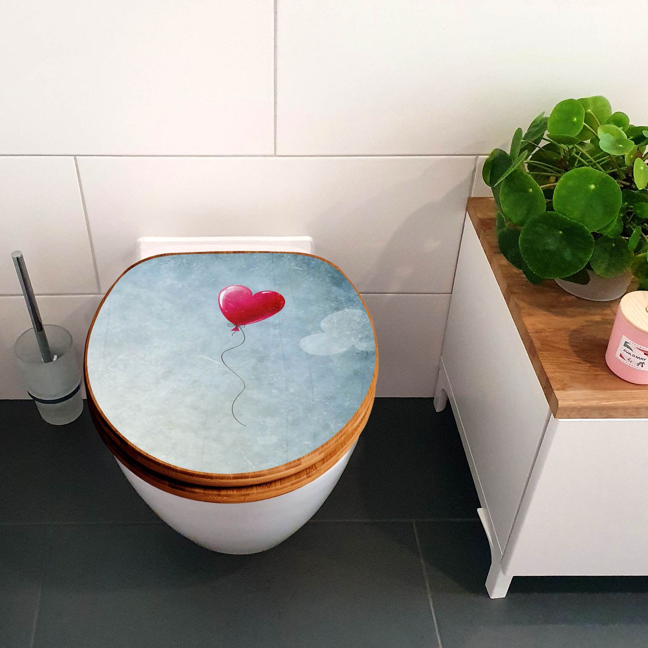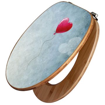 Design WC-Sitz Bambus Holz Motiv Herzballon