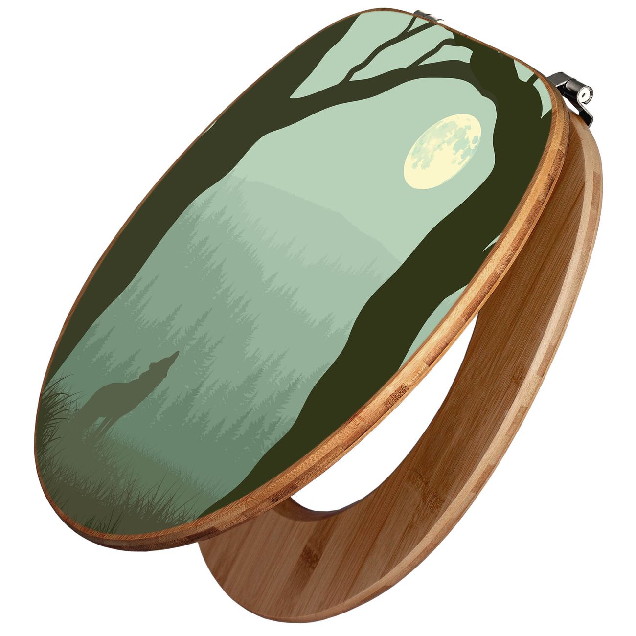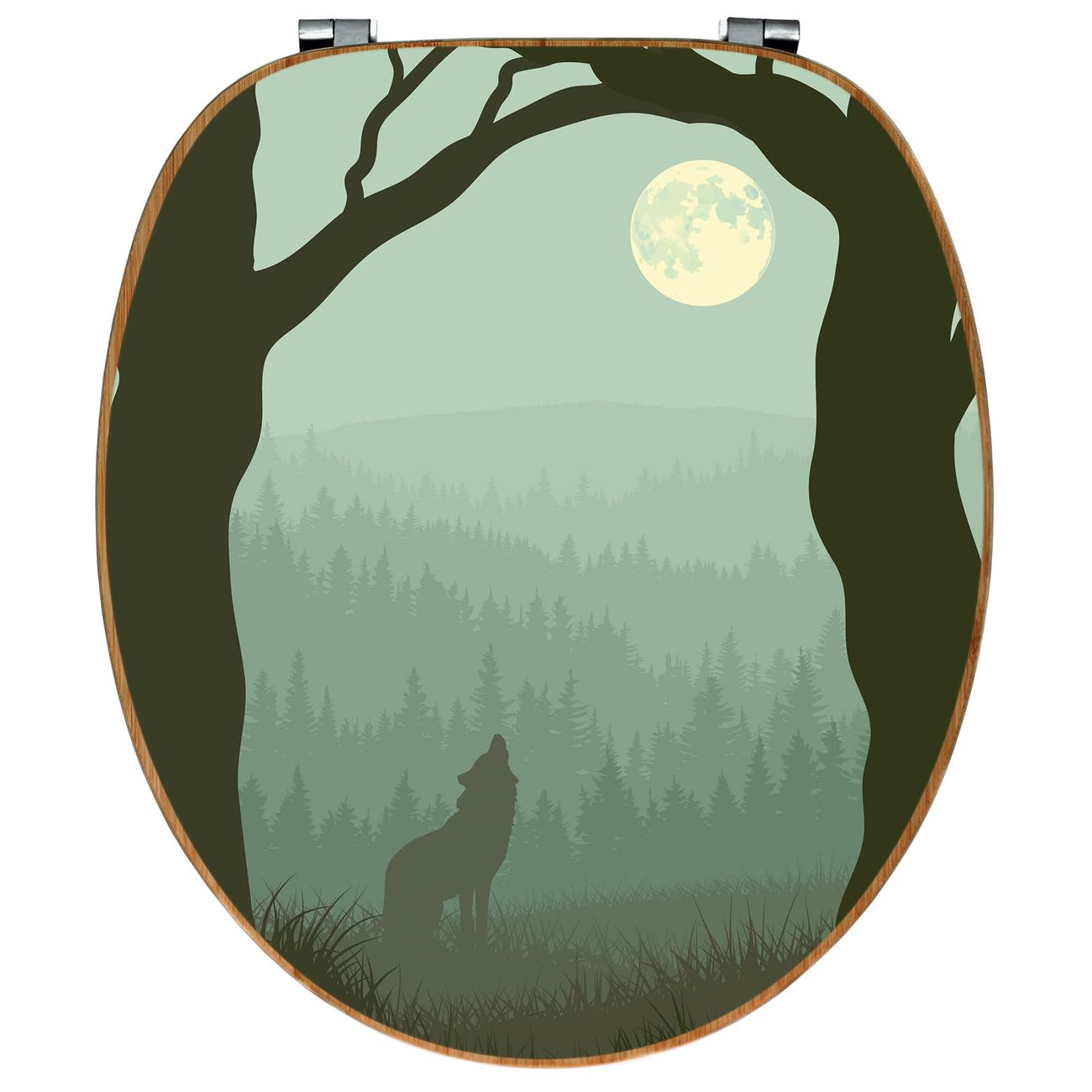 Design WC-Sitz Bambus Holz Motiv Heulender Wolf
