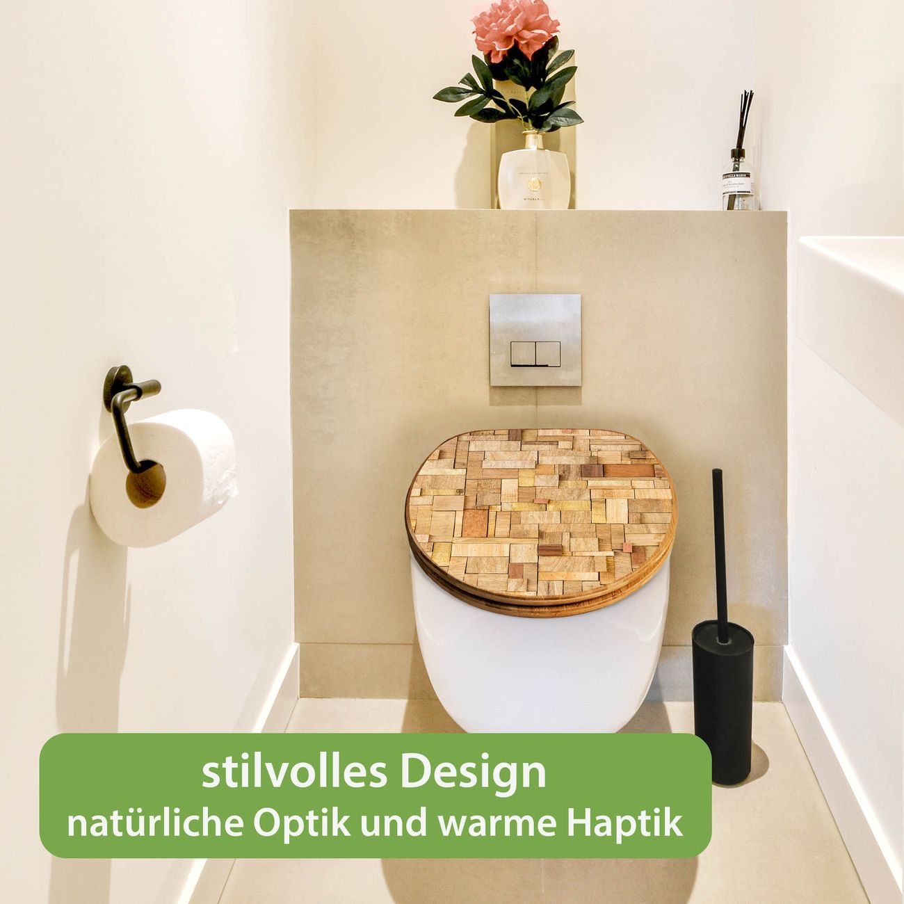 Design WC-Sitz Bambus Holz Motiv Hölzernes Flickwerk