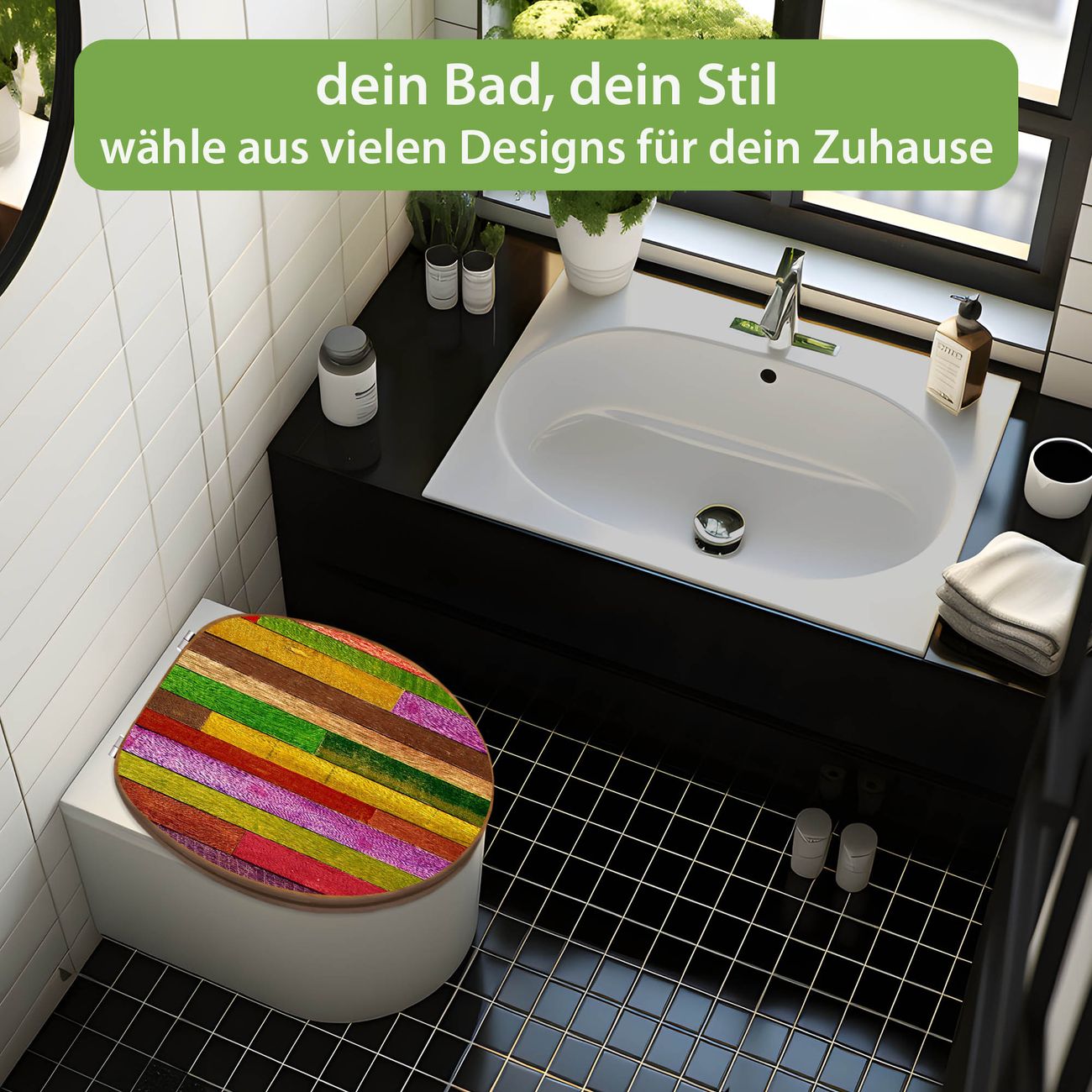 Design WC-Sitz Bambus Holz Motiv Holz Collage Bunt