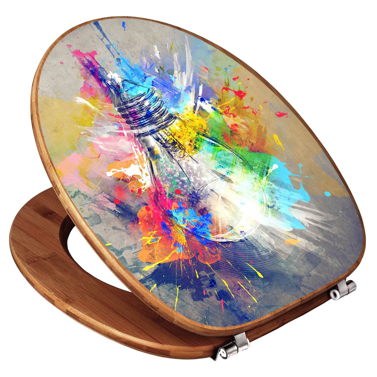 Mit dem banjado Toilettensitz in Bambus verbinden Sie Design und Funktionalität. Sie erhalten den WC-Sitz mit bewährt schwerer Holz Qualität und Universal Scharnieren. Das Motiv Motiv Idee besteht aus einer schutzlaminierten Motivfolie, die durch das Schutzlaminat zusätzlich vor Kratzern schützt. Durch diesen Motivdruck wird der WC-Sitz zu einem Blickfang in Ihrem Bad.