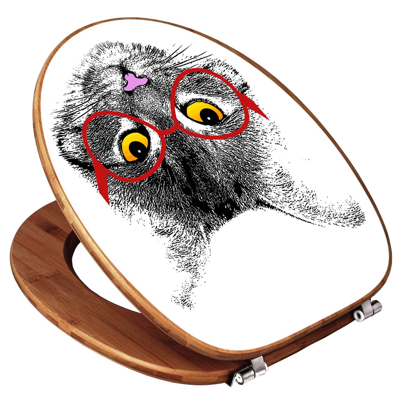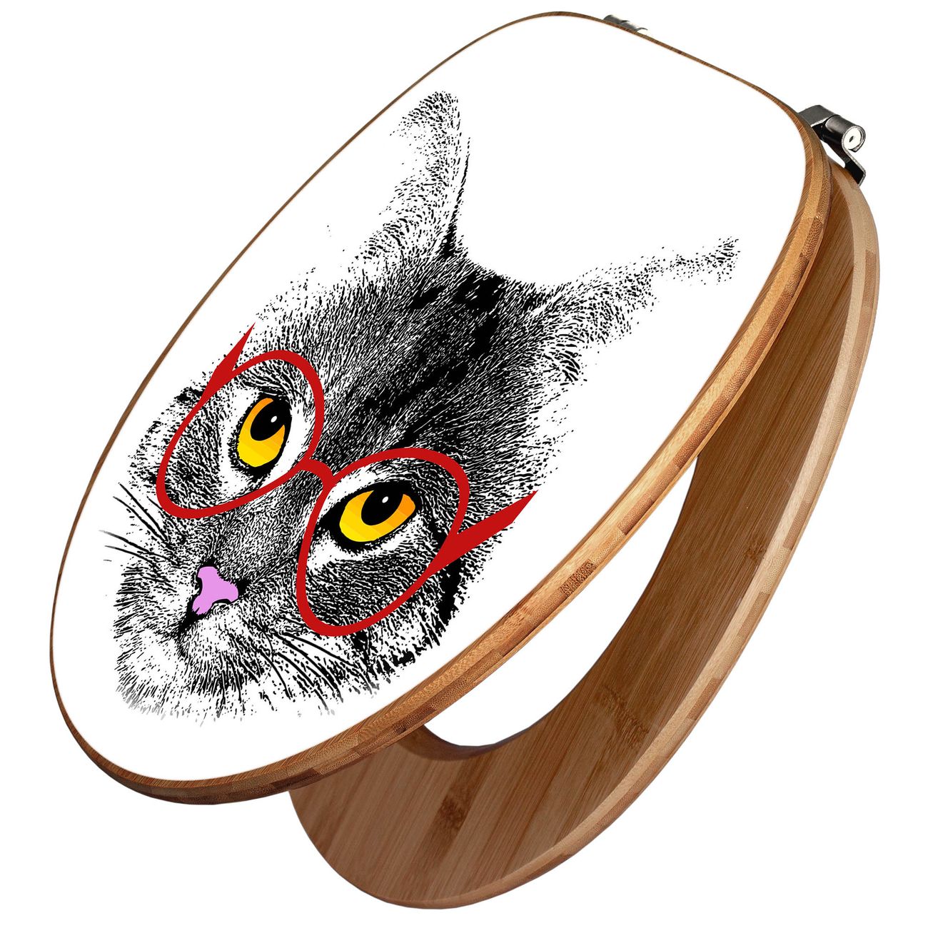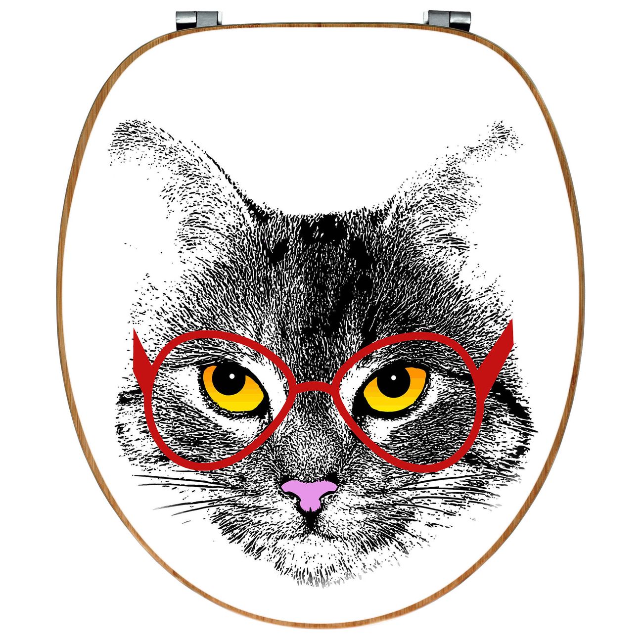 Mit dem banjado Toilettensitz in Bambus verbinden Sie Design und Funktionalität. Sie erhalten den WC-Sitz mit bewährt schwerer Holz Qualität und Universal Scharnieren. Das Motiv Motiv Intellicat besteht aus einer schutzlaminierten Motivfolie, die durch das Schutzlaminat zusätzlich vor Kratzern schützt. Durch diesen Motivdruck wird der WC-Sitz zu einem Blickfang in Ihrem Bad.