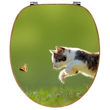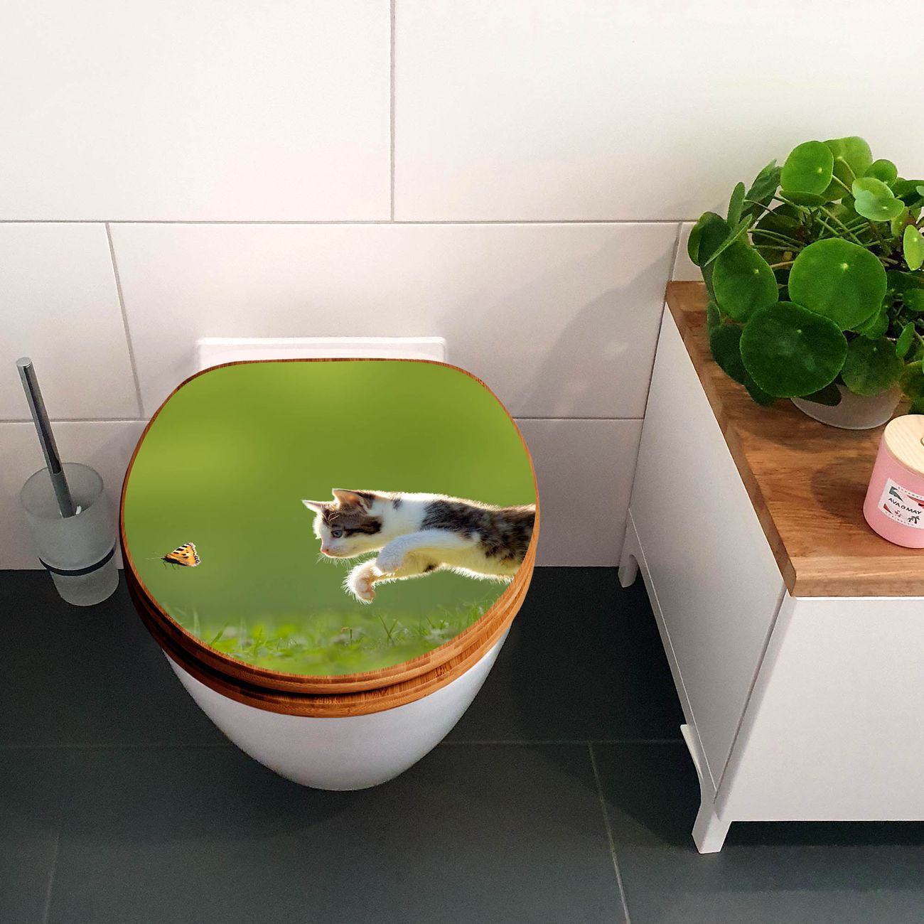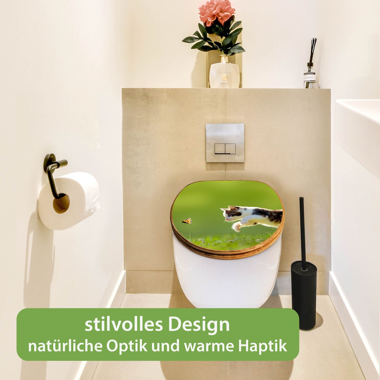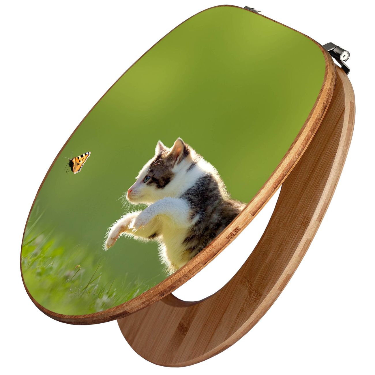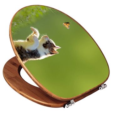 Design WC-Sitz Bambus Holz Motiv Jagende Katze