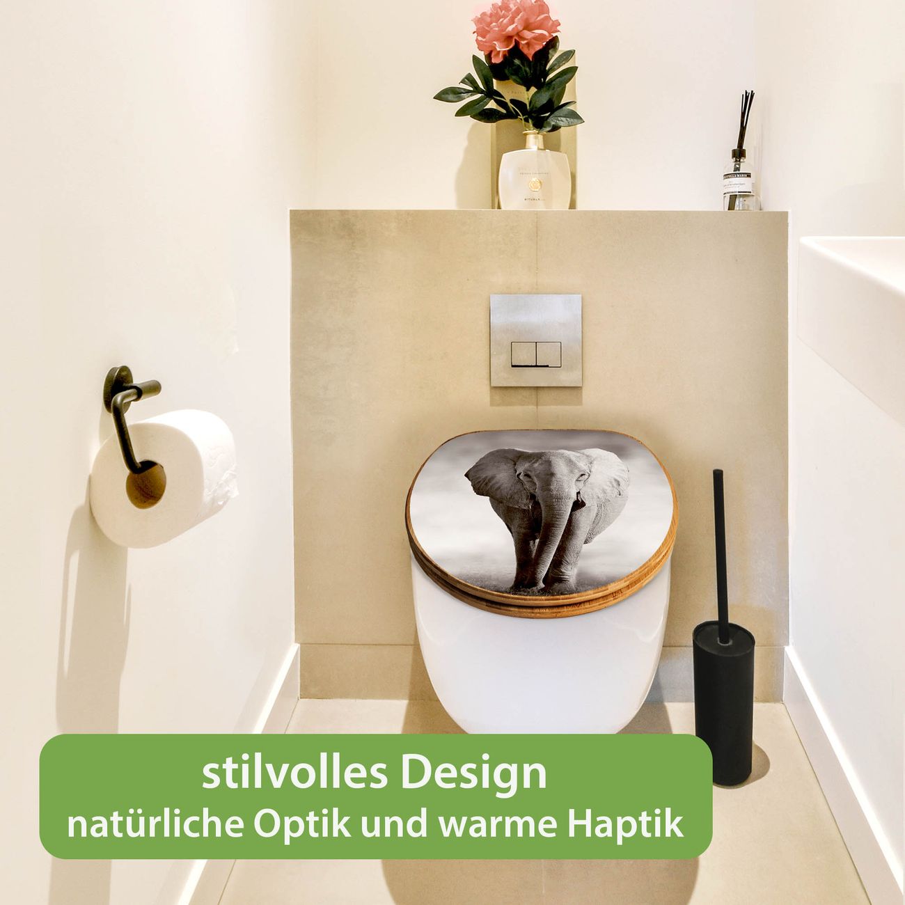 Mit dem banjado Toilettensitz in Bambus verbinden Sie Design und Funktionalität. Sie erhalten den WC-Sitz mit bewährt schwerer Holz Qualität und Universal Scharnieren. Das Motiv Motiv Joseline besteht aus einer schutzlaminierten Motivfolie, die durch das Schutzlaminat zusätzlich vor Kratzern schützt. Durch diesen Motivdruck wird der WC-Sitz zu einem Blickfang in Ihrem Bad.