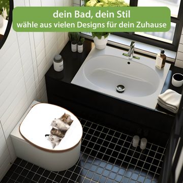 Mit dem banjado Toilettensitz in Bambus verbinden Sie Design und Funktionalität. Sie erhalten den WC-Sitz mit bewährt schwerer Holz Qualität und Universal Scharnieren. Das Motiv Motiv Kaetzchen besteht aus einer schutzlaminierten Motivfolie, die durch das Schutzlaminat zusätzlich vor Kratzern schützt. Durch diesen Motivdruck wird der WC-Sitz zu einem Blickfang in Ihrem Bad.
