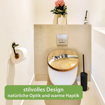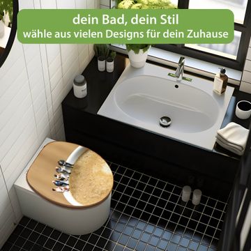 Mit dem banjado Toilettensitz in Bambus verbinden Sie Design und Funktionalität. Sie erhalten den WC-Sitz mit bewährt schwerer Holz Qualität und Universal Scharnieren. Das Motiv Motiv Kaffeepause besteht aus einer schutzlaminierten Motivfolie, die durch das Schutzlaminat zusätzlich vor Kratzern schützt. Durch diesen Motivdruck wird der WC-Sitz zu einem Blickfang in Ihrem Bad.