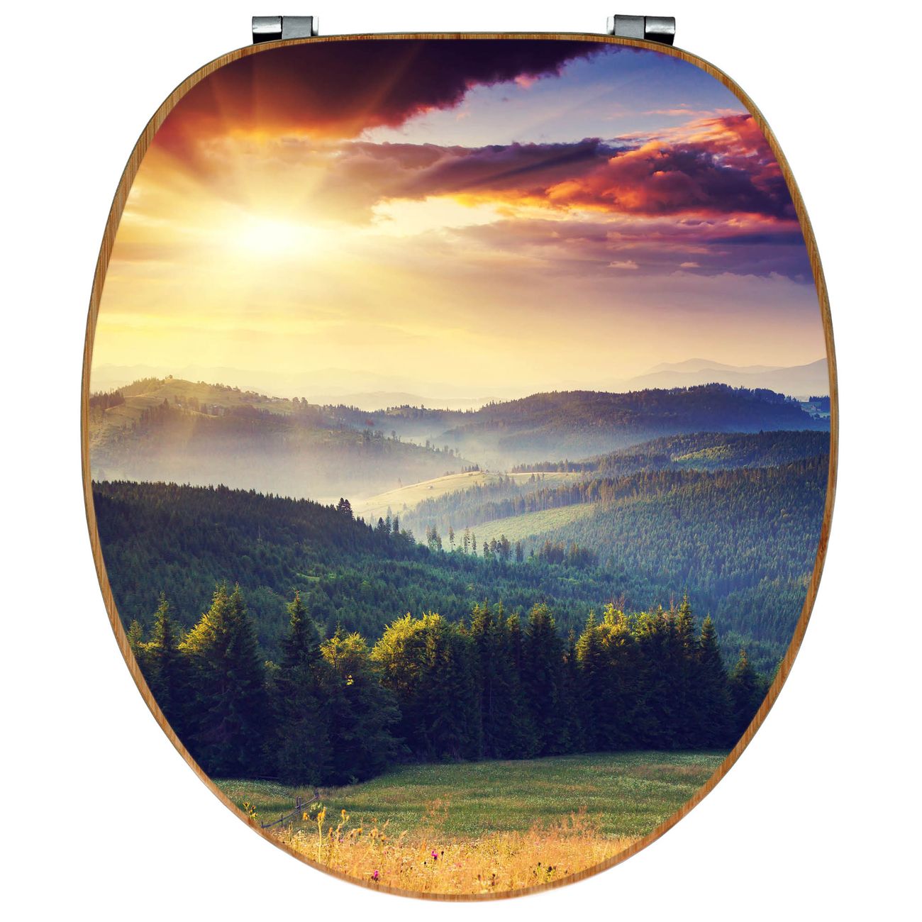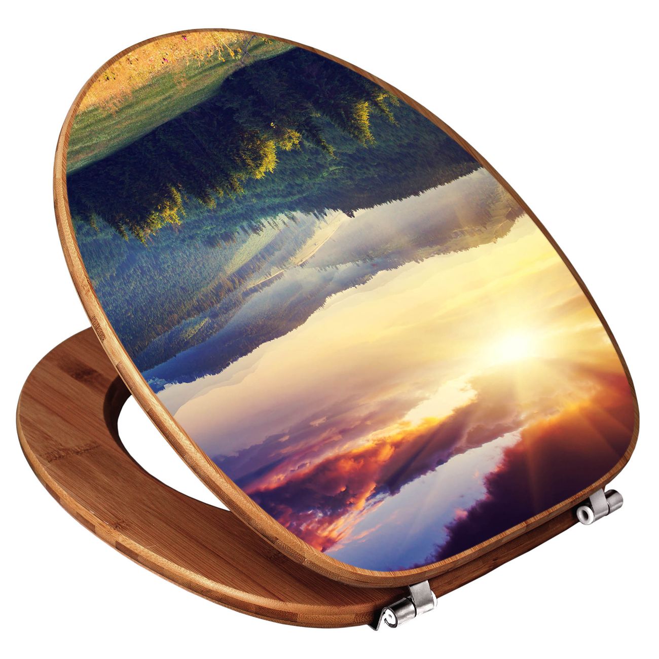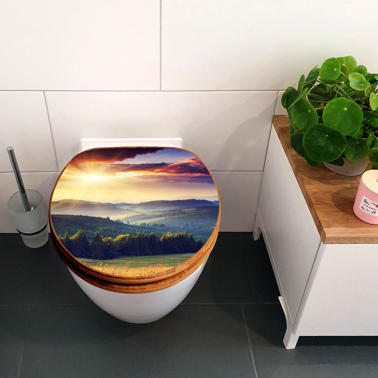 Design WC-Sitz Bambus Holz Motiv Karpaten Sonnenuntergang