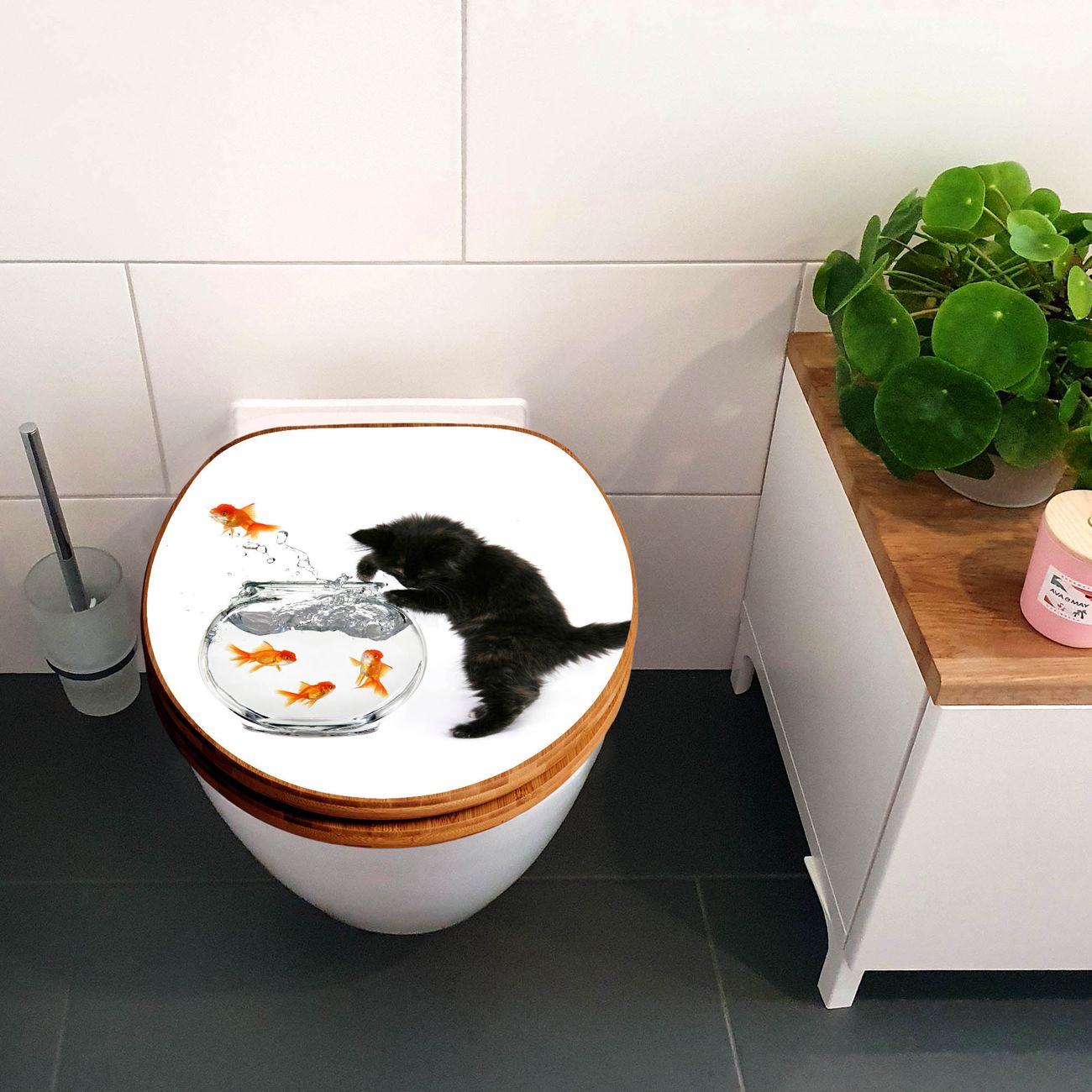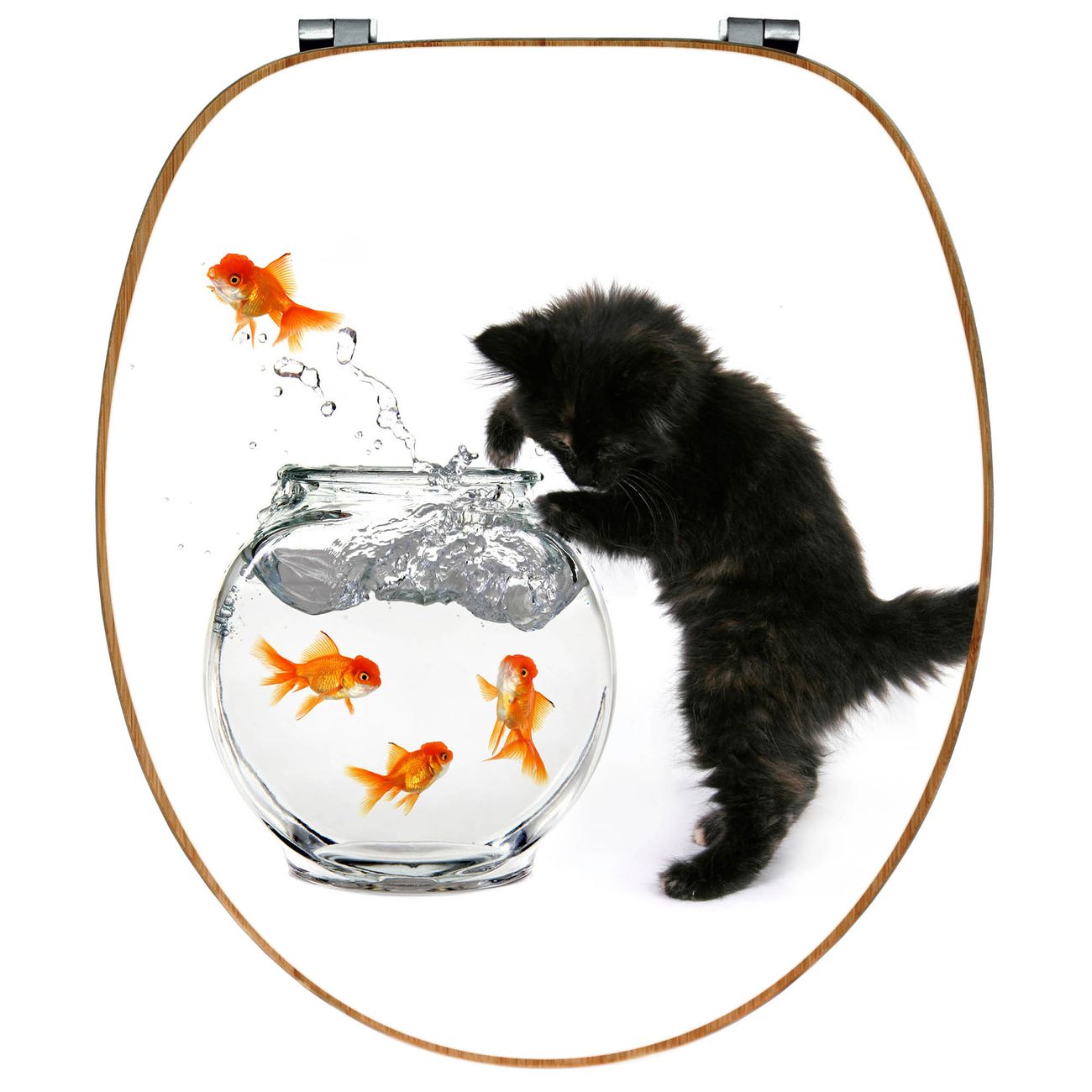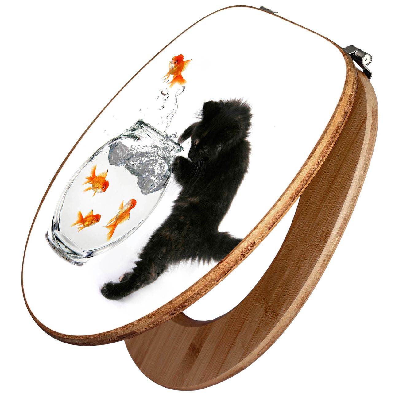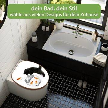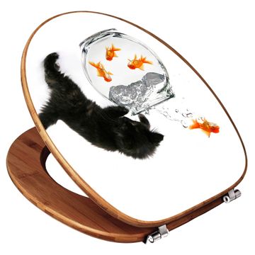 Design WC-Sitz Bambus Holz Motiv Katze Und Fisch