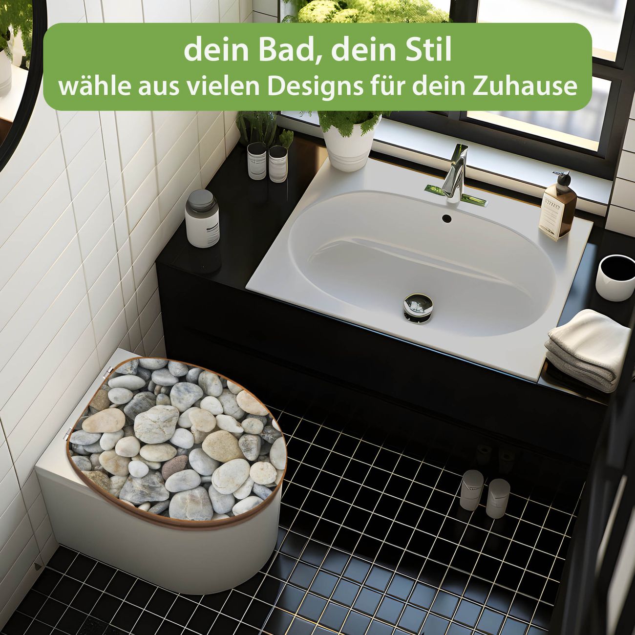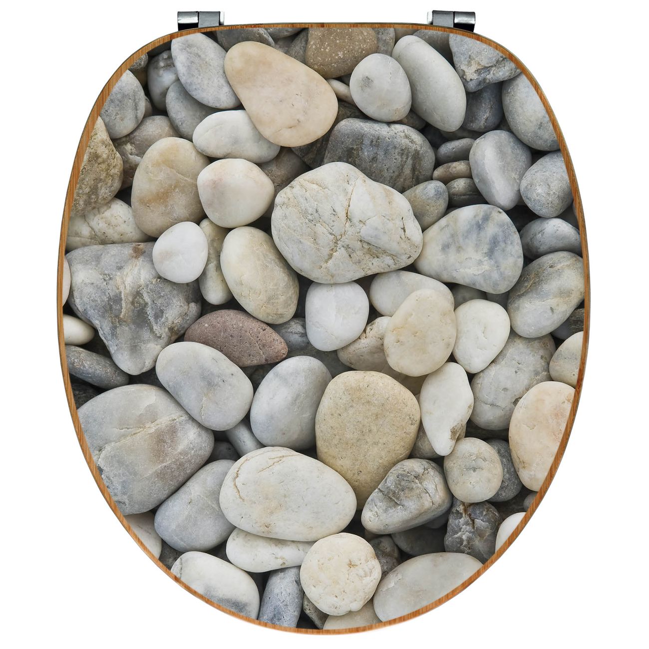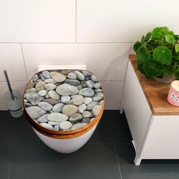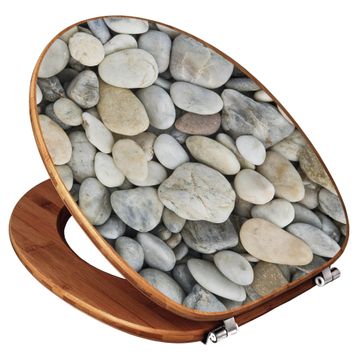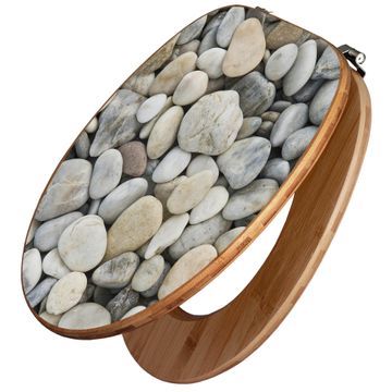 Design WC-Sitz Bambus Holz Motiv Kieselsteine
