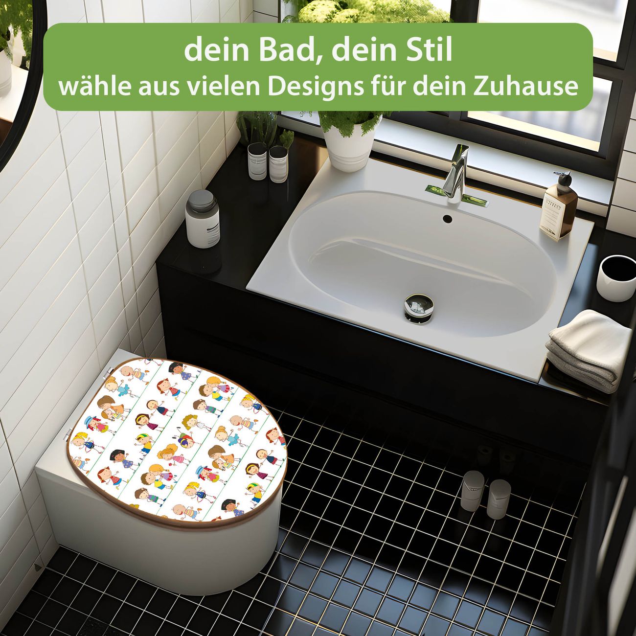 Mit dem banjado Toilettensitz in Bambus verbinden Sie Design und Funktionalität. Sie erhalten den WC-Sitz mit bewährt schwerer Holz Qualität und Universal Scharnieren. Das Motiv Motiv Kinder besteht aus einer schutzlaminierten Motivfolie, die durch das Schutzlaminat zusätzlich vor Kratzern schützt. Durch diesen Motivdruck wird der WC-Sitz zu einem Blickfang in Ihrem Bad.