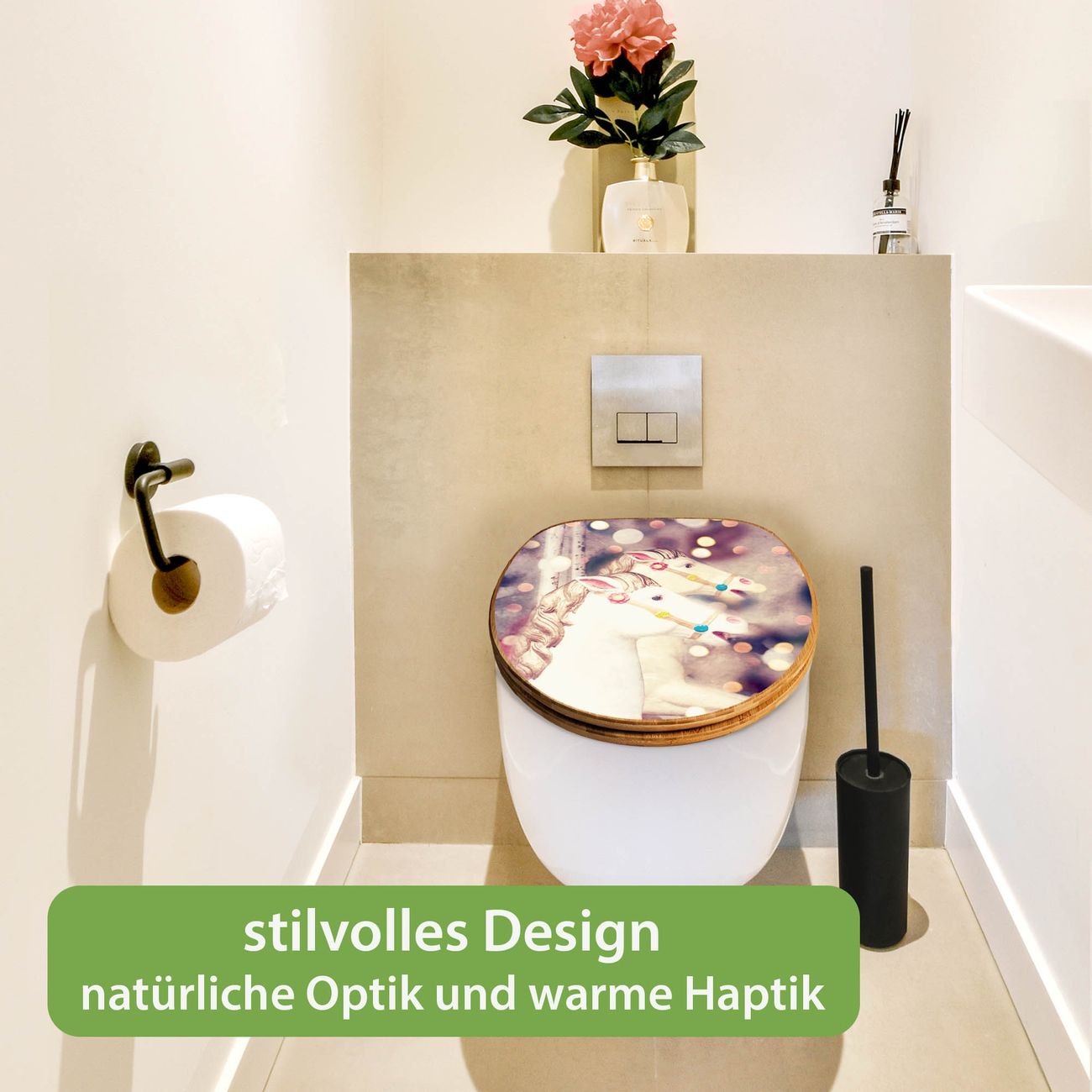 Mit dem banjado Toilettensitz in Bambus verbinden Sie Design und Funktionalität. Sie erhalten den WC-Sitz mit bewährt schwerer Holz Qualität und Universal Scharnieren. Das Motiv Motiv Kinderkarussell besteht aus einer schutzlaminierten Motivfolie, die durch das Schutzlaminat zusätzlich vor Kratzern schützt. Durch diesen Motivdruck wird der WC-Sitz zu einem Blickfang in Ihrem Bad.
