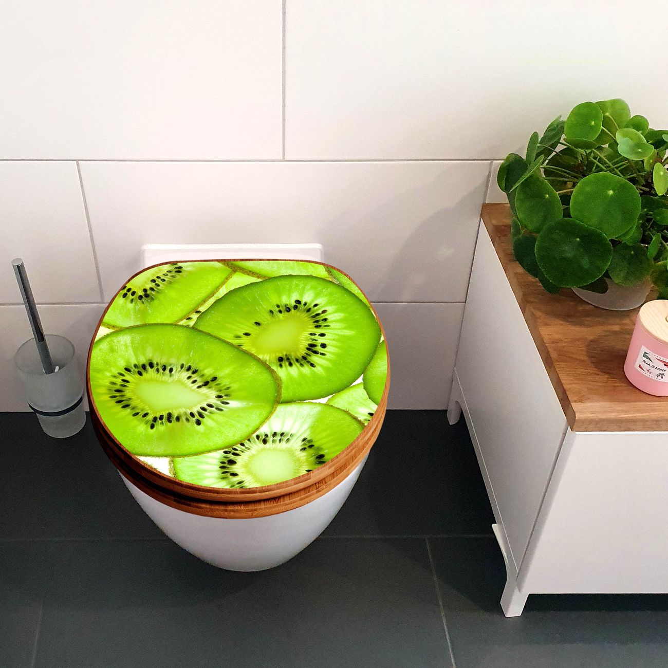 Design WC-Sitz Bambus Holz Motiv Kiwi