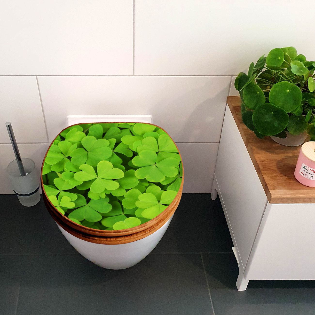 Design WC-Sitz Bambus Holz Motiv Klee