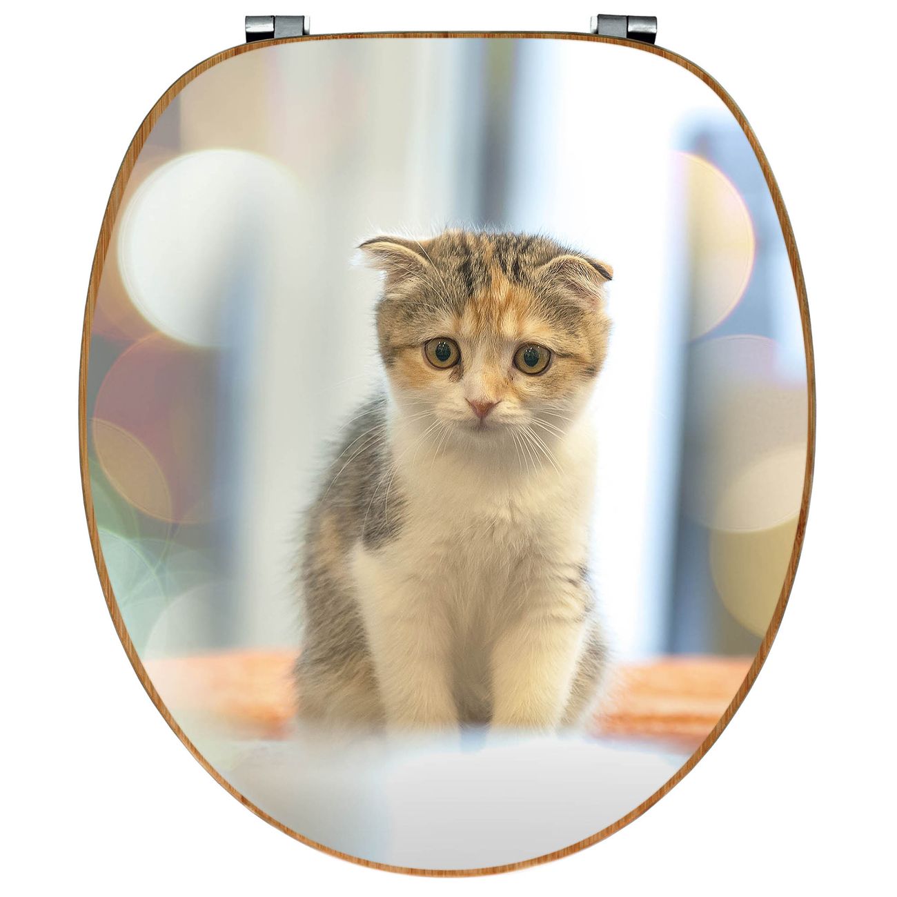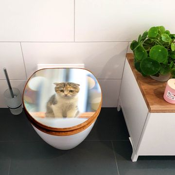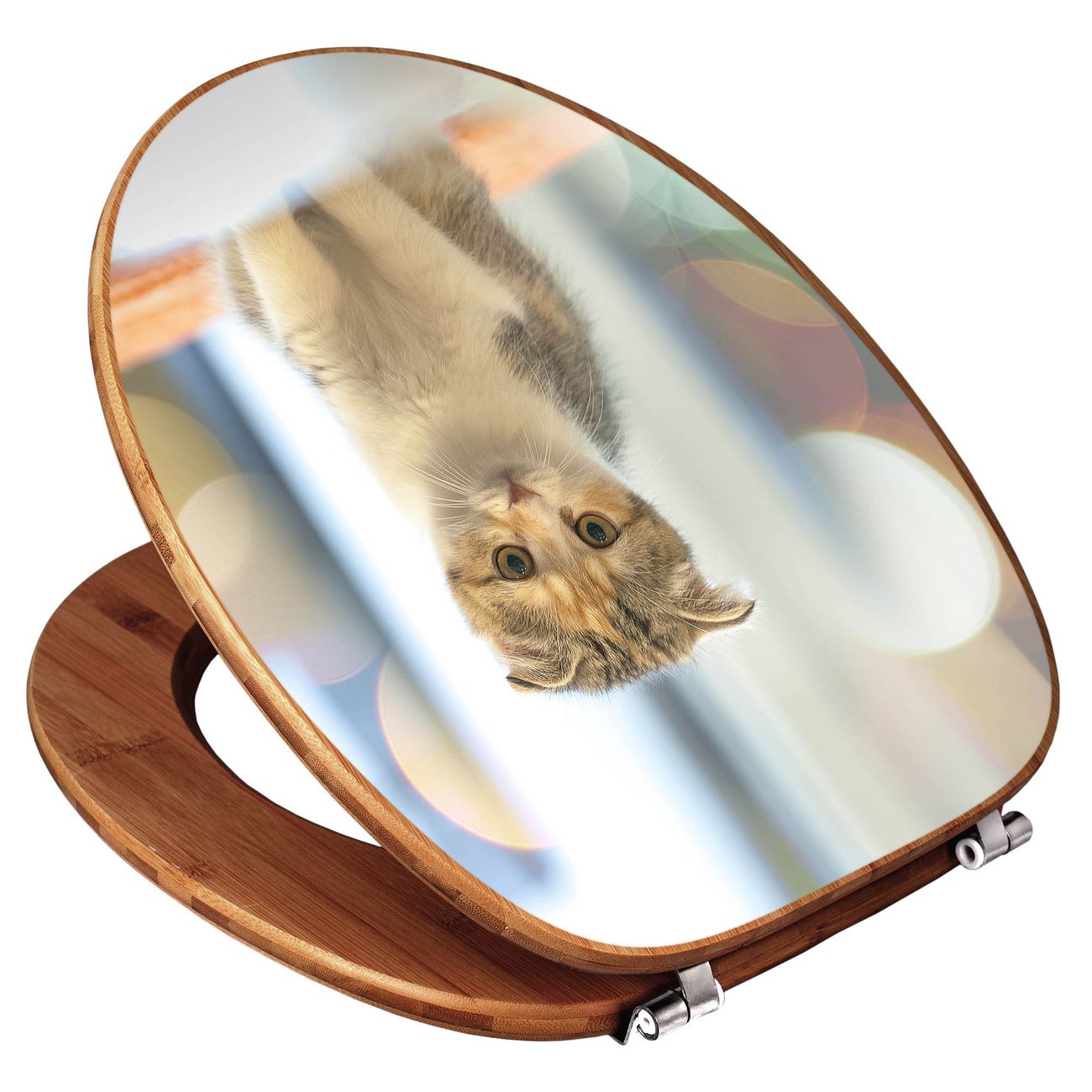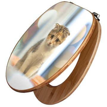 Design WC-Sitz Bambus Holz Motiv Kleine Katze