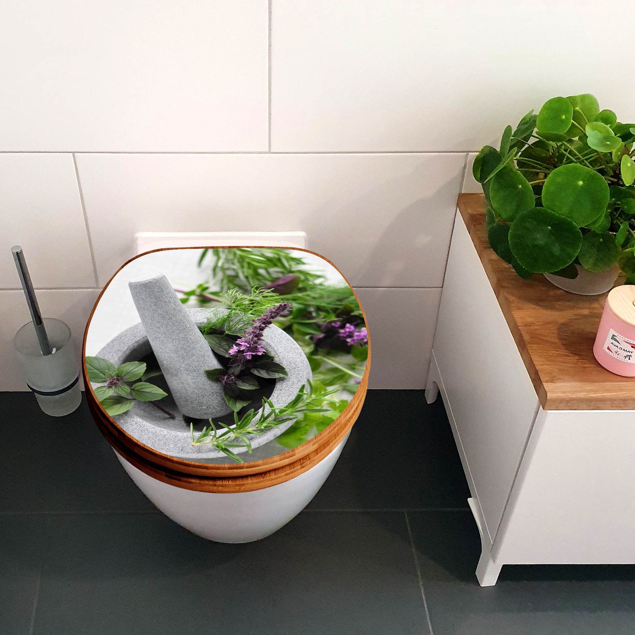Design WC-Sitz Bambus Holz Motiv Kräuter