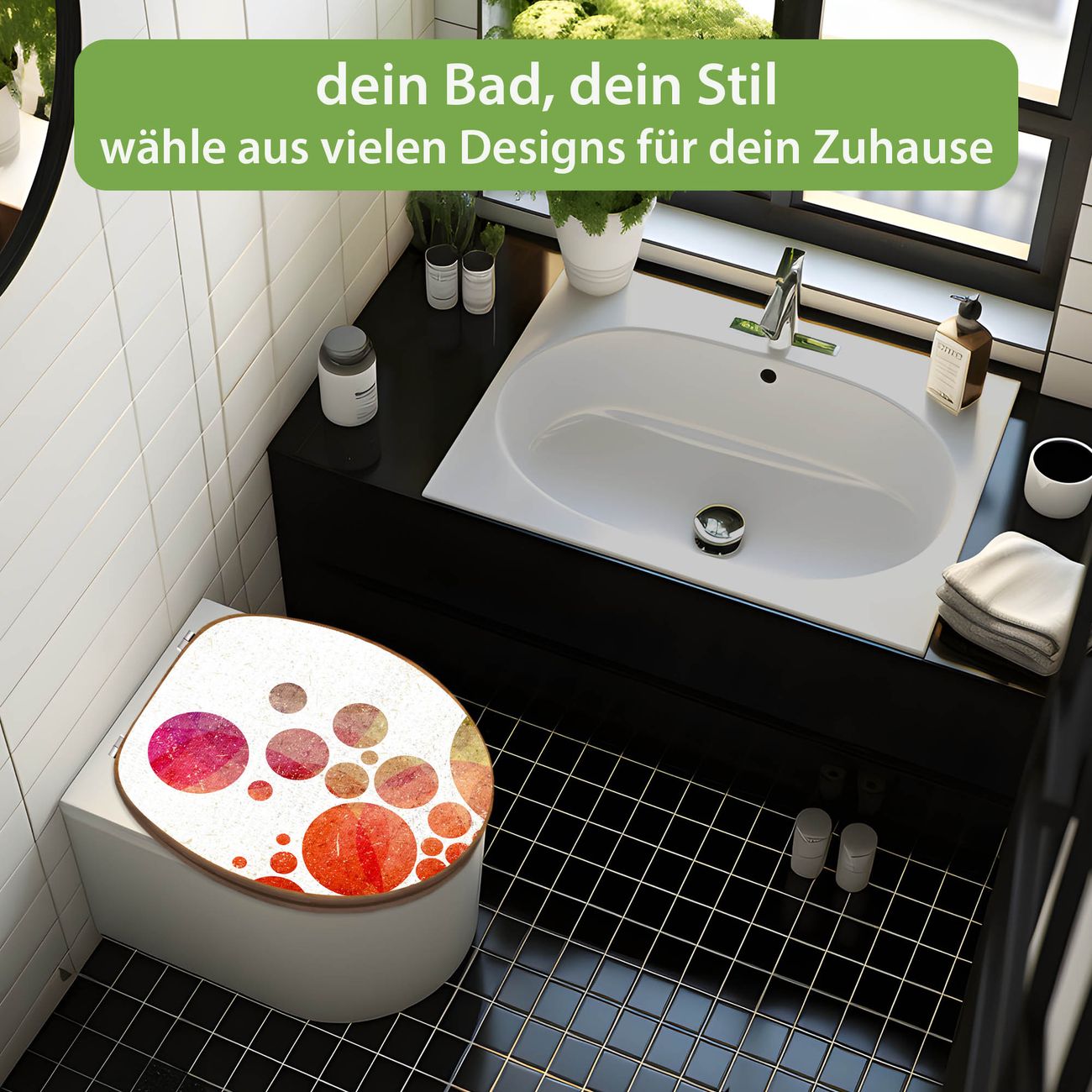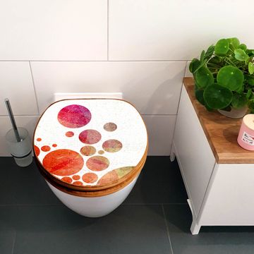 Mit dem banjado Toilettensitz in Bambus verbinden Sie Design und Funktionalität. Sie erhalten den WC-Sitz mit bewährt schwerer Holz Qualität und Universal Scharnieren. Das Motiv Motiv Kreise besteht aus einer schutzlaminierten Motivfolie, die durch das Schutzlaminat zusätzlich vor Kratzern schützt. Durch diesen Motivdruck wird der WC-Sitz zu einem Blickfang in Ihrem Bad.