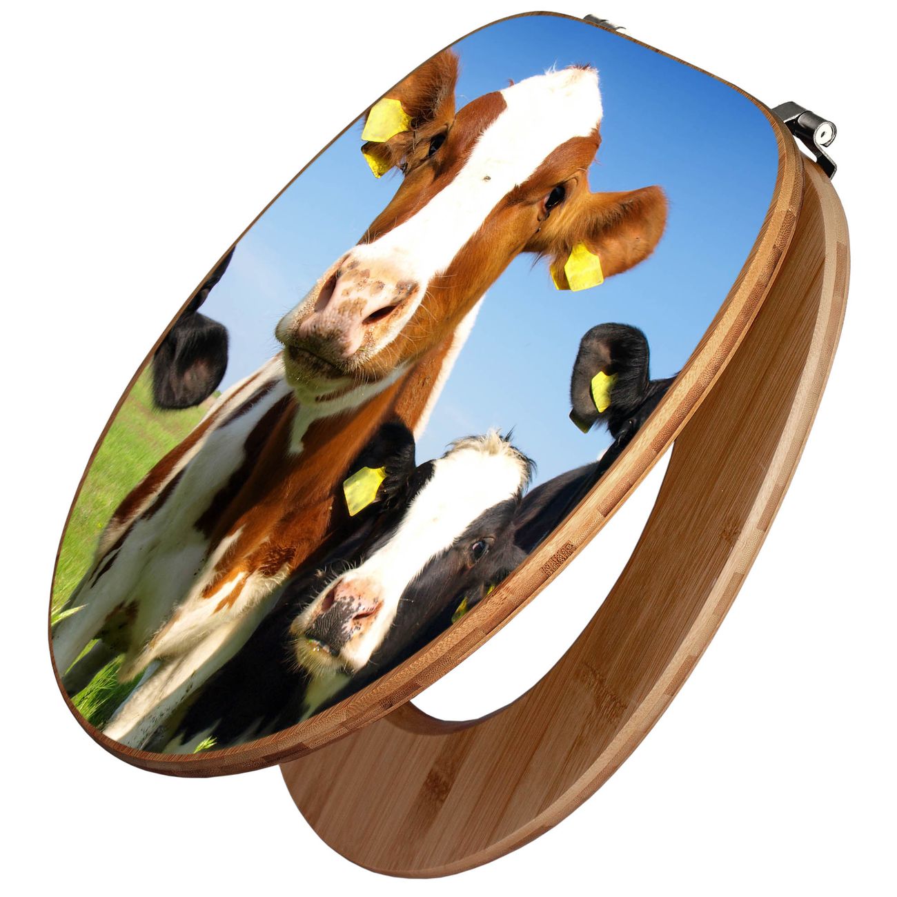 Design WC-Sitz Bambus Holz Motiv Kühe