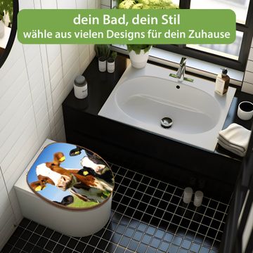 Mit dem banjado Toilettensitz in Bambus verbinden Sie Design und Funktionalität. Sie erhalten den WC-Sitz mit bewährt schwerer Holz Qualität und Universal Scharnieren. Das Motiv Motiv Kühe besteht aus einer schutzlaminierten Motivfolie, die durch das Schutzlaminat zusätzlich vor Kratzern schützt. Durch diesen Motivdruck wird der WC-Sitz zu einem Blickfang in Ihrem Bad.