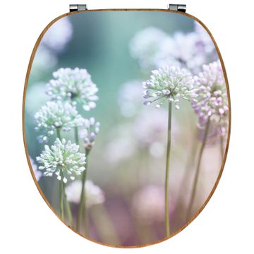 Mit dem banjado Toilettensitz in Bambus verbinden Sie Design und Funktionalität. Sie erhalten den WC-Sitz mit bewährt schwerer Holz Qualität und Universal Scharnieren. Das Motiv Motiv Lauchblüte besteht aus einer schutzlaminierten Motivfolie, die durch das Schutzlaminat zusätzlich vor Kratzern schützt. Durch diesen Motivdruck wird der WC-Sitz zu einem Blickfang in Ihrem Bad.