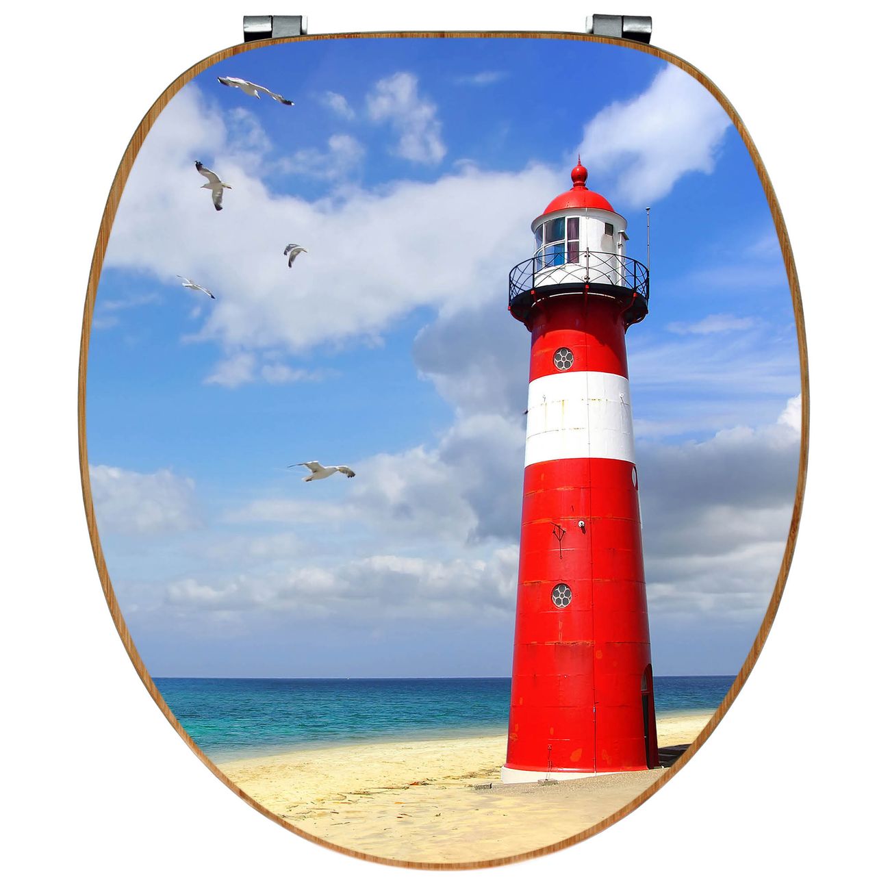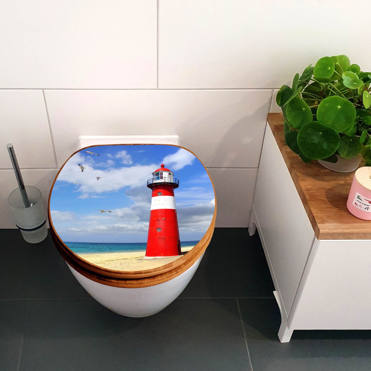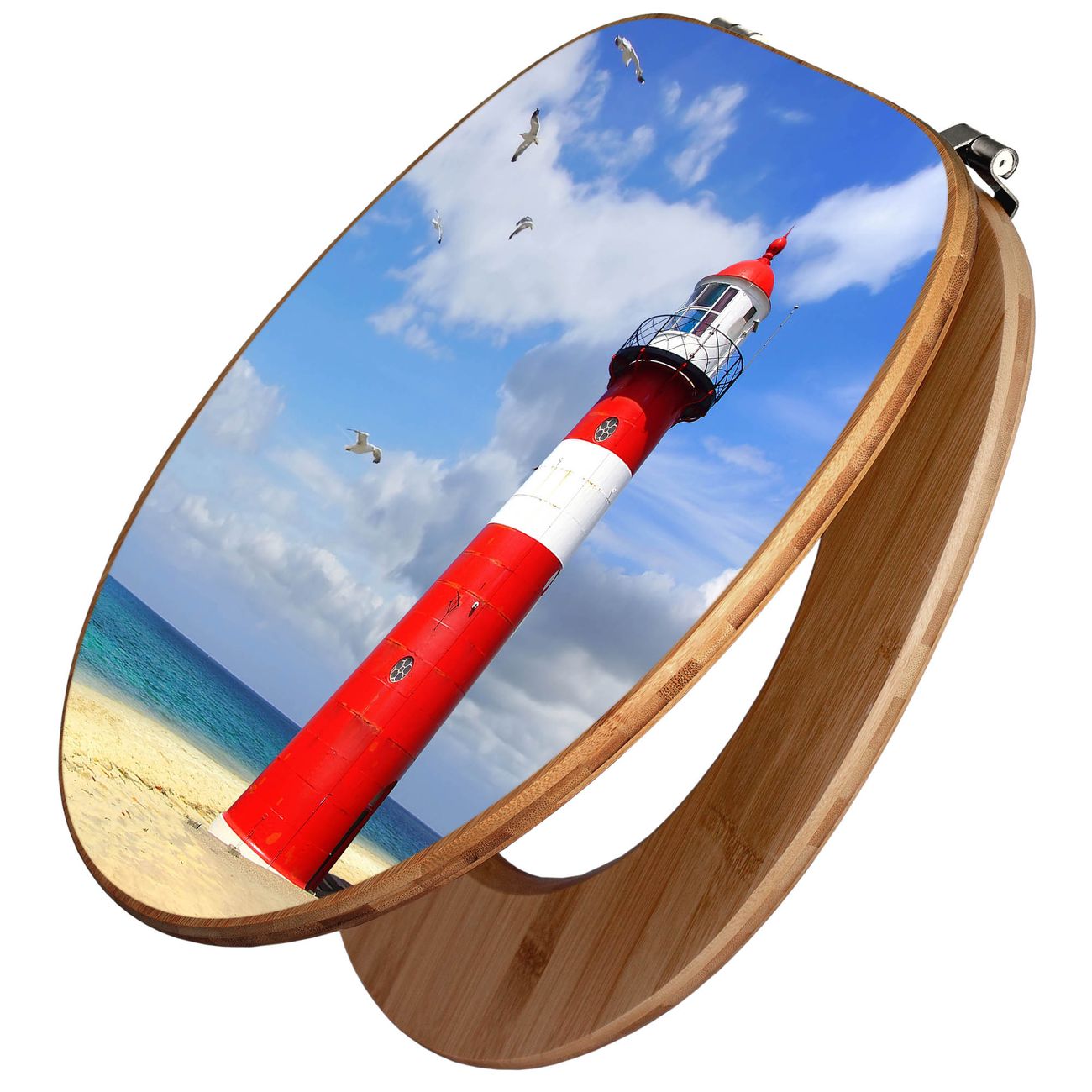 Design WC-Sitz Bambus Holz Motiv Leuchtturm Westkapelle