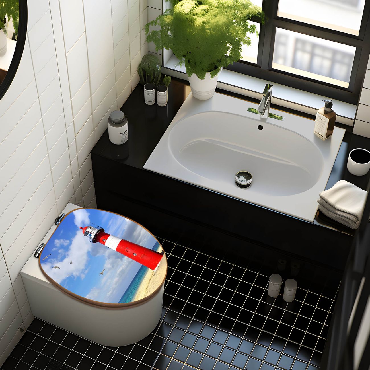 Mit dem banjado Toilettensitz in Bambus verbinden Sie Design und Funktionalität. Sie erhalten den WC-Sitz mit bewährt schwerer Holz Qualität und Universal Scharnieren. Das Motiv Motiv Leuchtturm Westkapelle besteht aus einer schutzlaminierten Motivfolie, die durch das Schutzlaminat zusätzlich vor Kratzern schützt. Durch diesen Motivdruck wird der WC-Sitz zu einem Blickfang in Ihrem Bad.