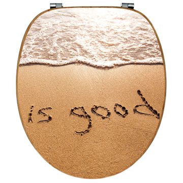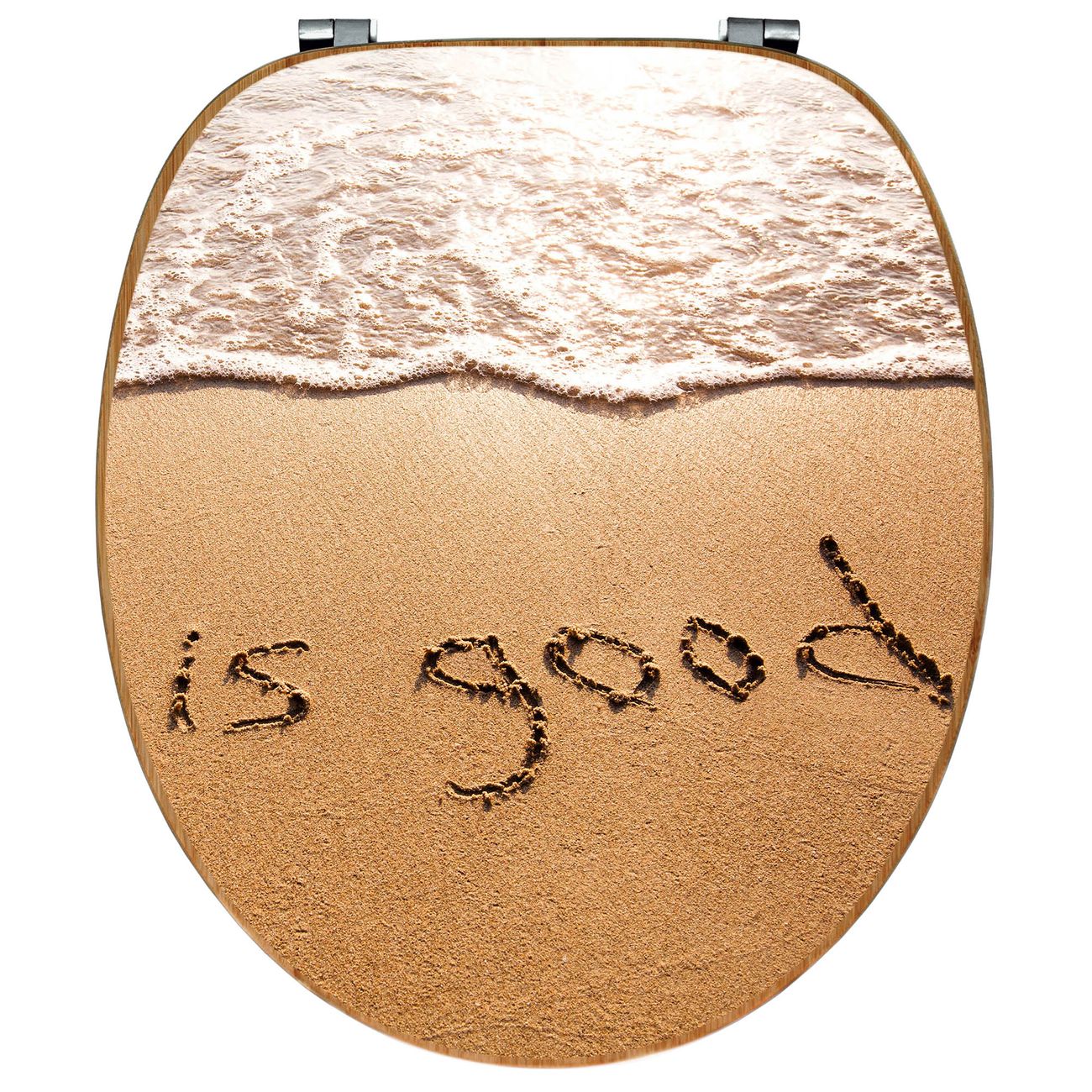 Mit dem banjado Toilettensitz in Bambus verbinden Sie Design und Funktionalität. Sie erhalten den WC-Sitz mit bewährt schwerer Holz Qualität und Universal Scharnieren. Das Motiv Motiv Life Is Good besteht aus einer schutzlaminierten Motivfolie, die durch das Schutzlaminat zusätzlich vor Kratzern schützt. Durch diesen Motivdruck wird der WC-Sitz zu einem Blickfang in Ihrem Bad.