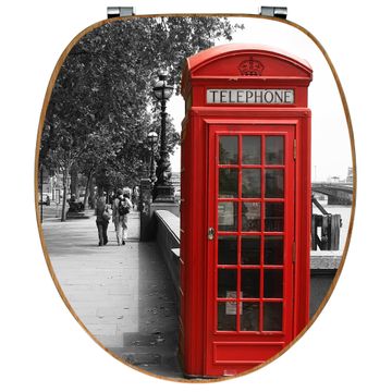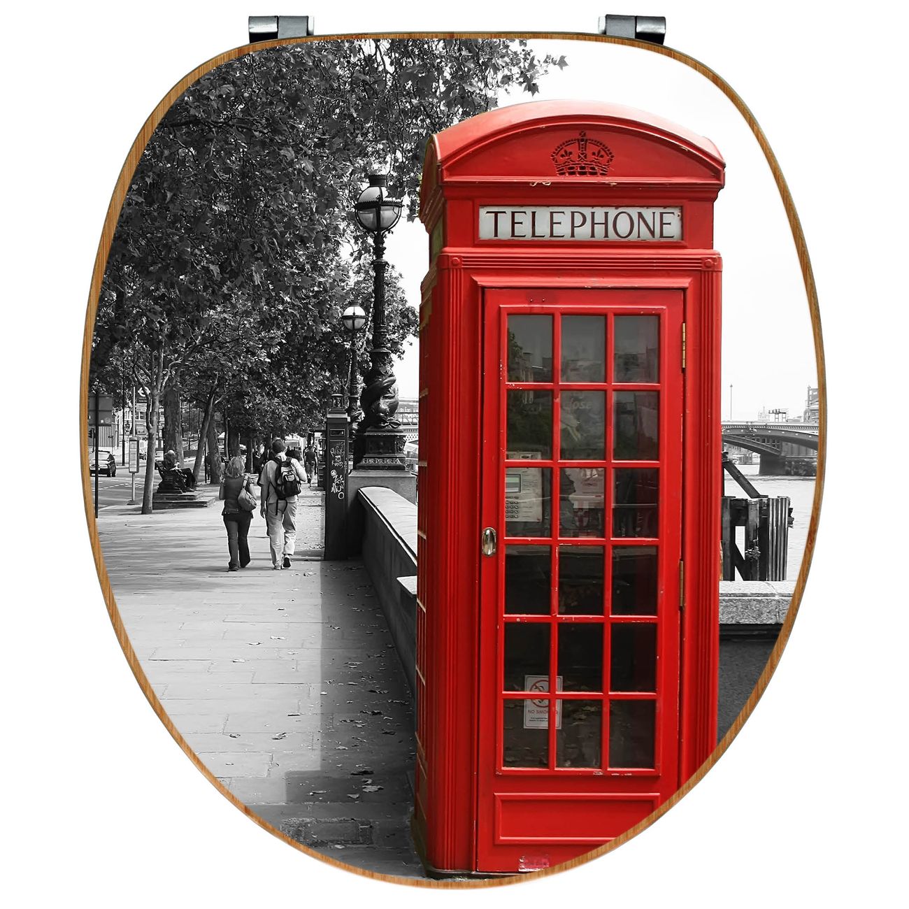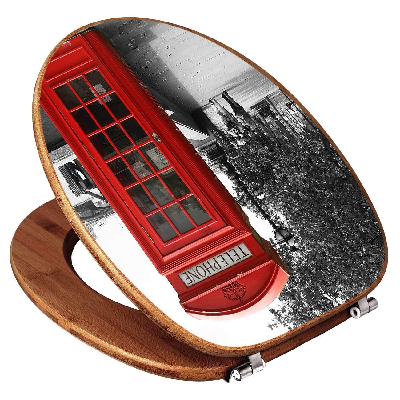 Design WC-Sitz Bambus Holz Motiv London Red Telephone