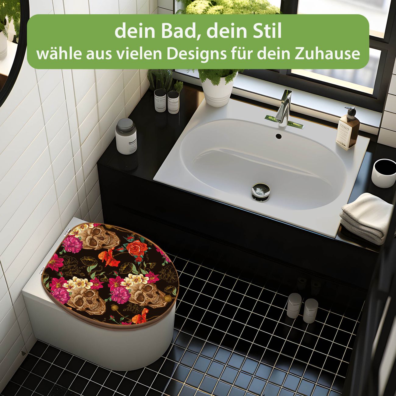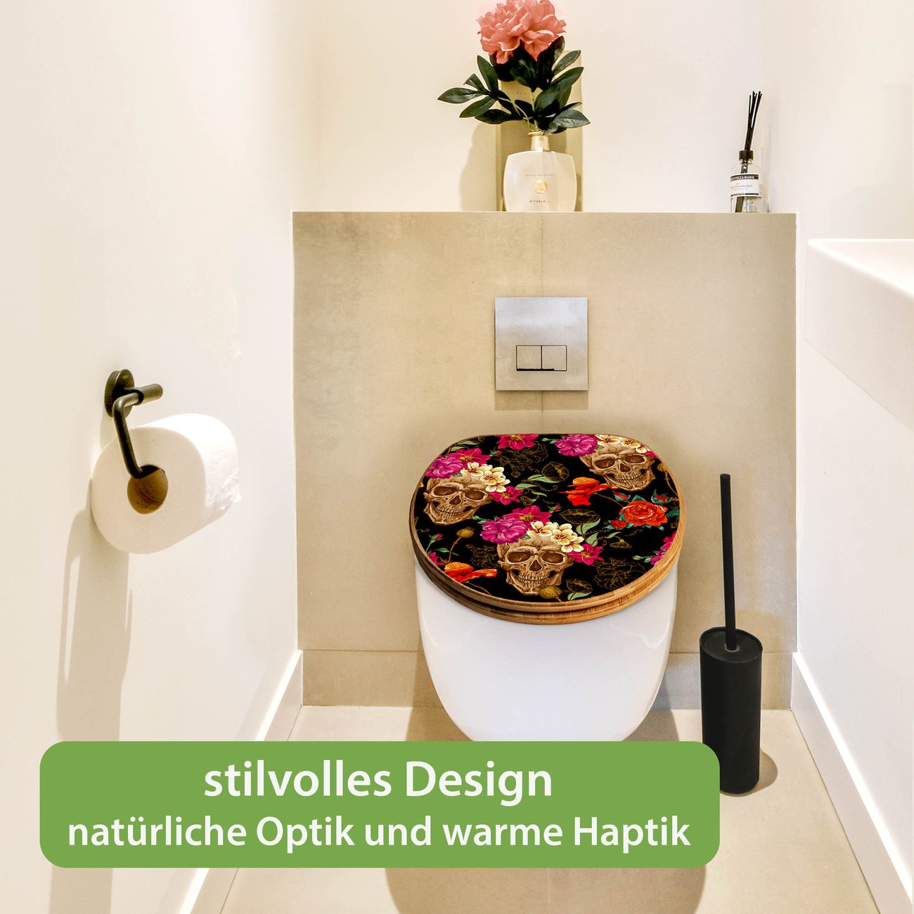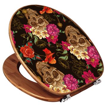 Mit dem banjado Toilettensitz in Bambus verbinden Sie Design und Funktionalität. Sie erhalten den WC-Sitz mit bewährt schwerer Holz Qualität und Universal Scharnieren. Das Motiv Motiv Los Dias de Muertos besteht aus einer schutzlaminierten Motivfolie, die durch das Schutzlaminat zusätzlich vor Kratzern schützt. Durch diesen Motivdruck wird der WC-Sitz zu einem Blickfang in Ihrem Bad.