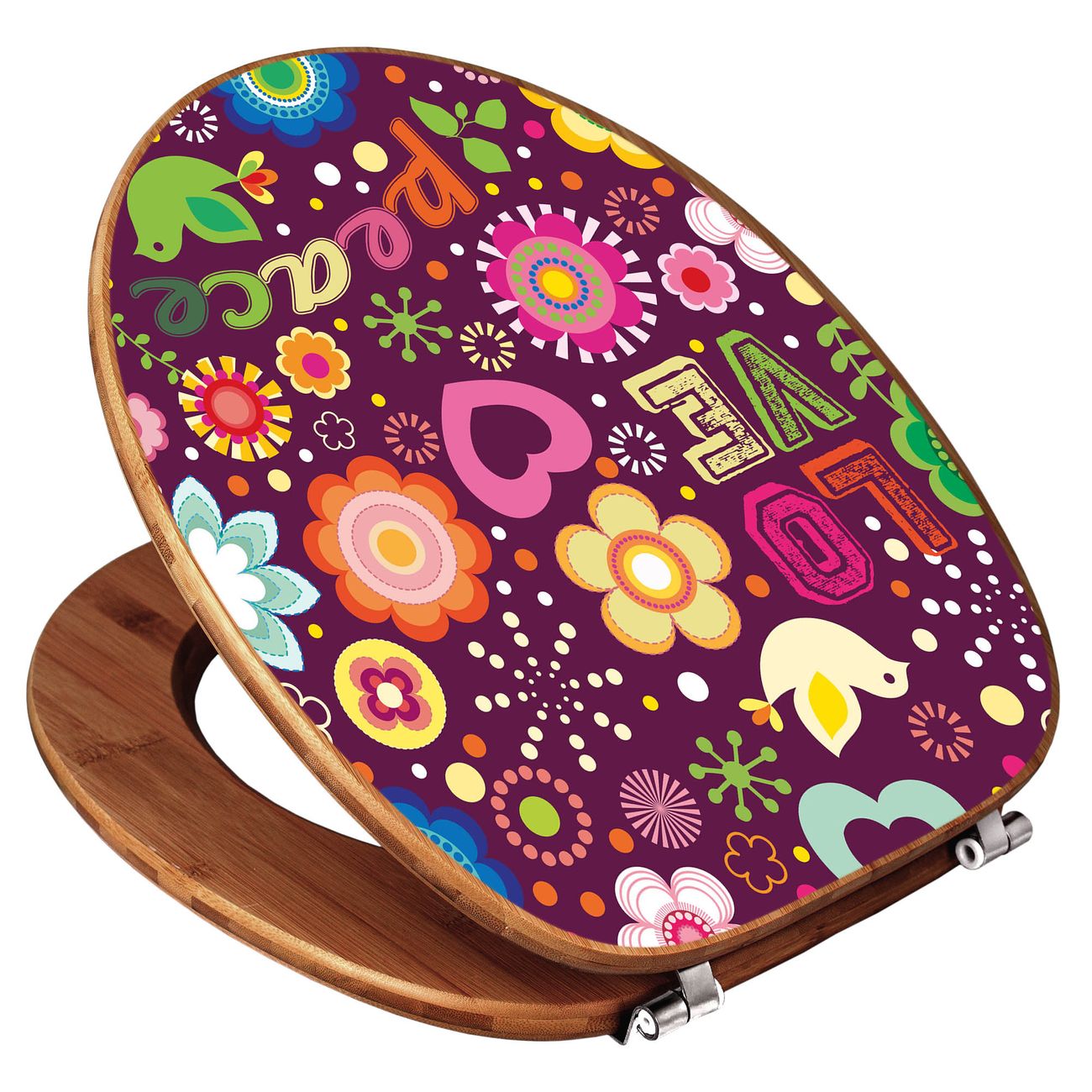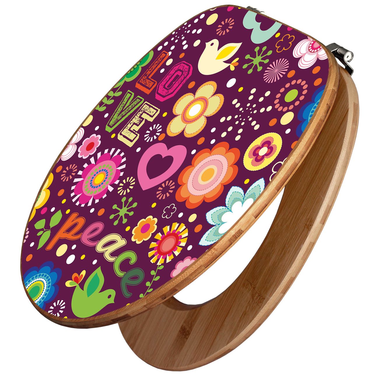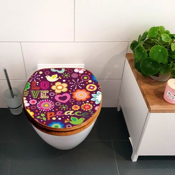 Design WC-Sitz Bambus Holz Motiv Love and Peace