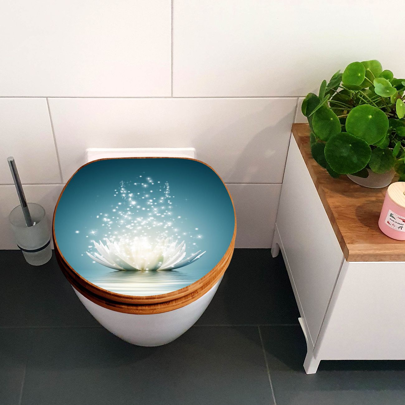 Design WC-Sitz Bambus Holz Motiv Magische Lotusblüte