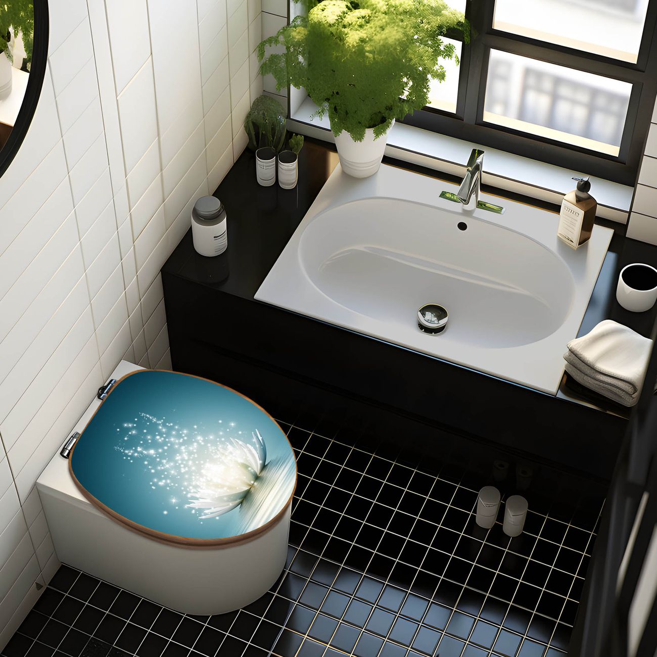 Mit dem banjado Toilettensitz in Bambus verbinden Sie Design und Funktionalität. Sie erhalten den WC-Sitz mit bewährt schwerer Holz Qualität und Universal Scharnieren. Das Motiv Motiv Magische Lotusblüte besteht aus einer schutzlaminierten Motivfolie, die durch das Schutzlaminat zusätzlich vor Kratzern schützt. Durch diesen Motivdruck wird der WC-Sitz zu einem Blickfang in Ihrem Bad.