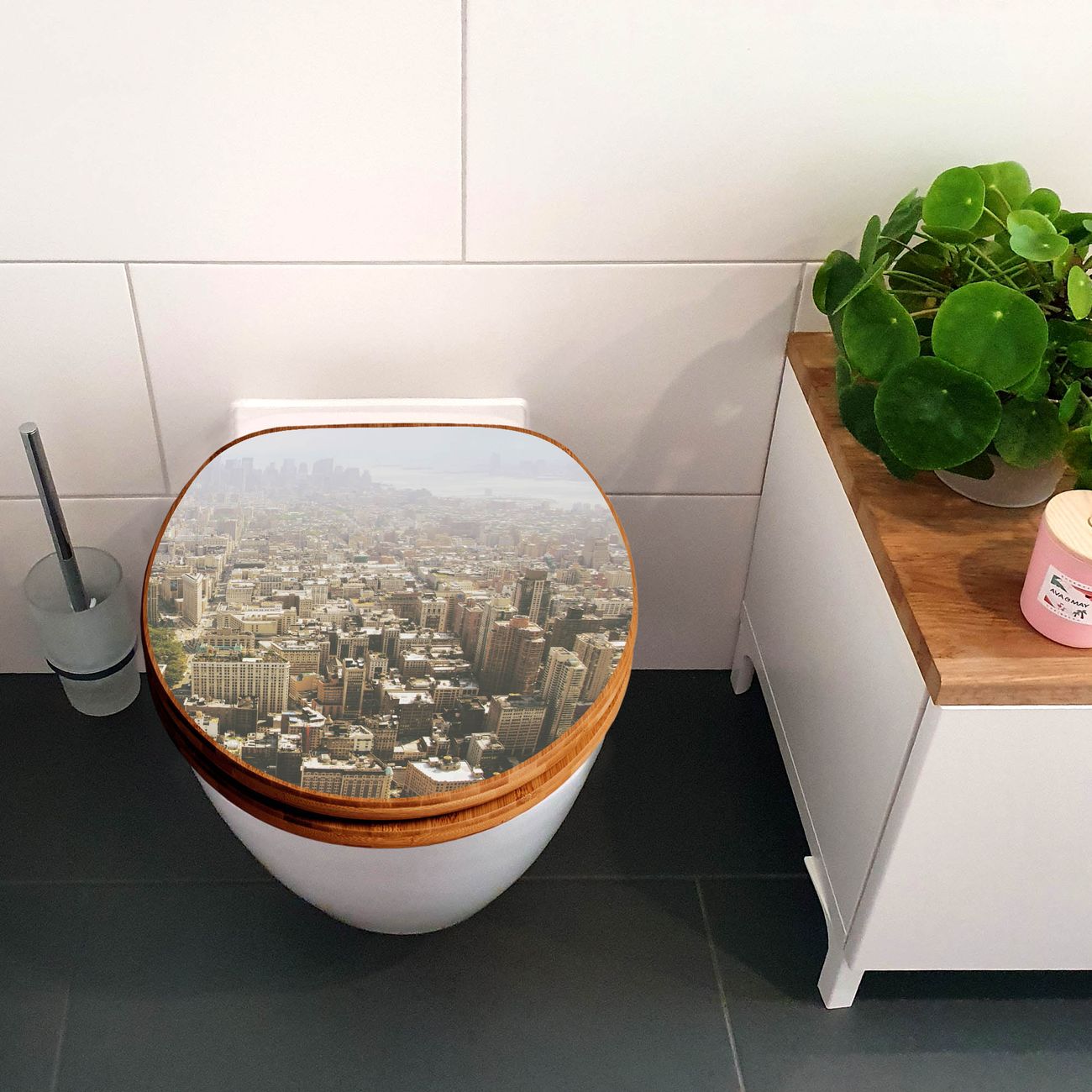 Design WC-Sitz Bambus Holz Motiv Manhattan 1
