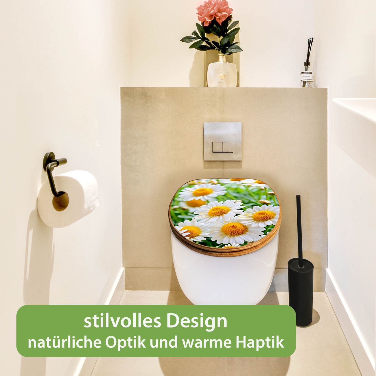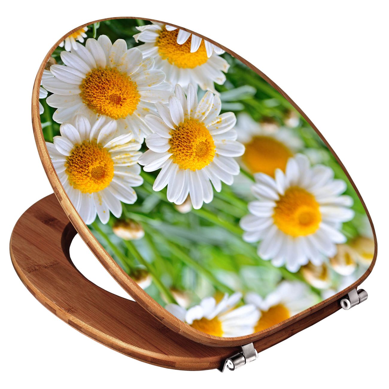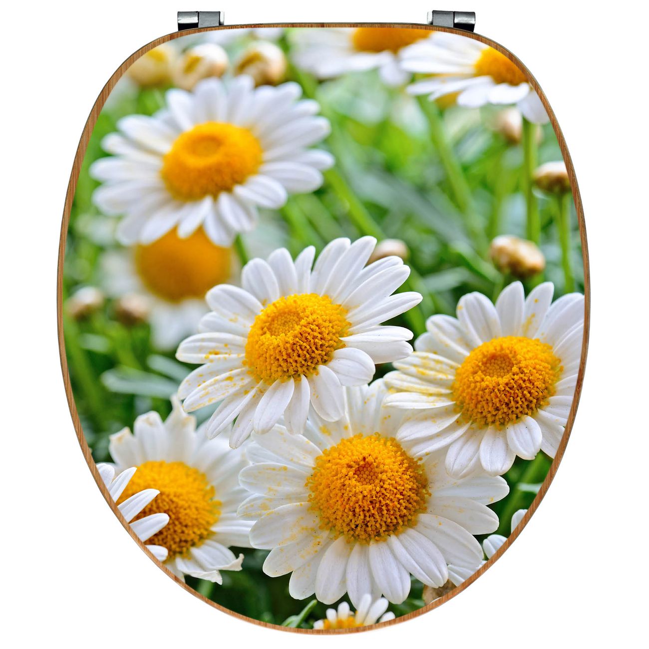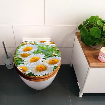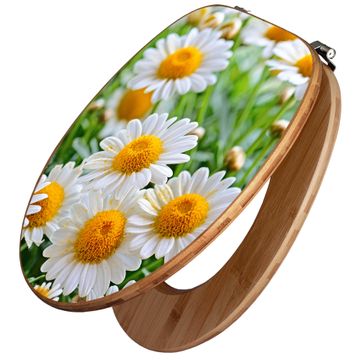 Design WC-Sitz Bambus Holz Motiv Margeriten Illustration