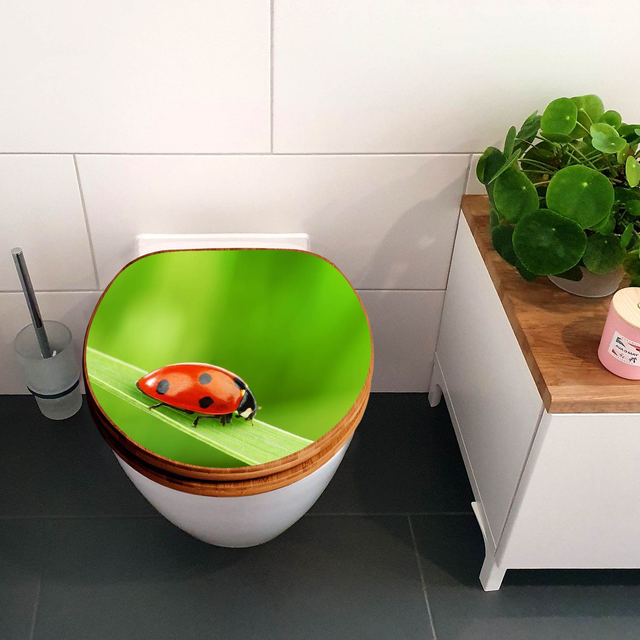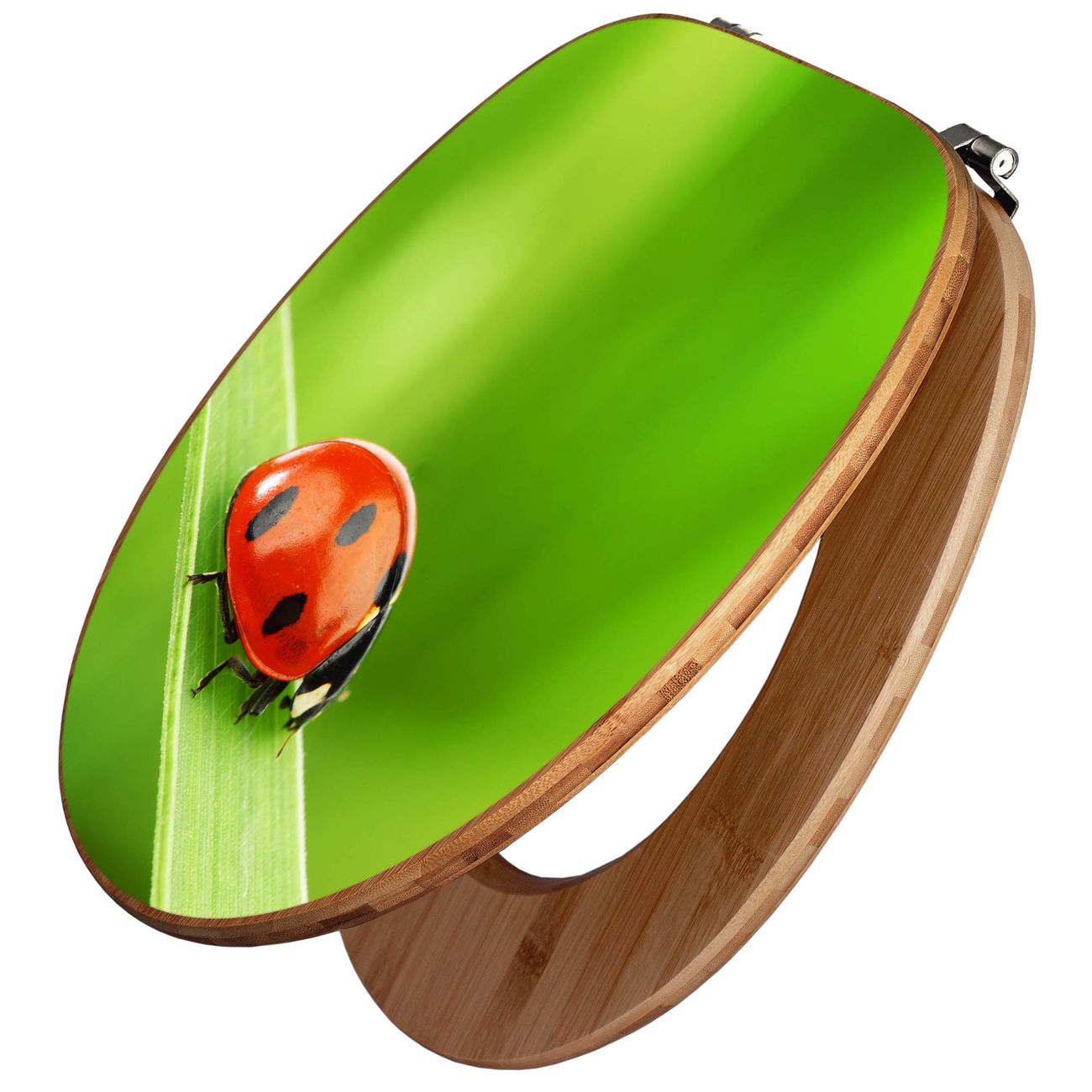 Design WC-Sitz Bambus Holz Motiv Marienkäfer