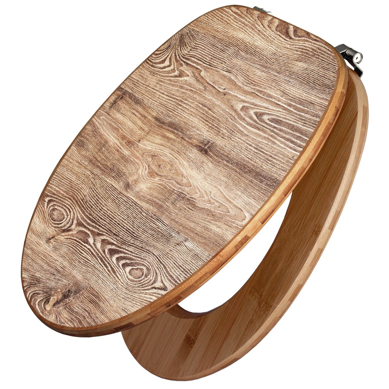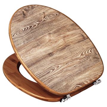 Mit dem banjado Toilettensitz in Bambus verbinden Sie Design und Funktionalität. Sie erhalten den WC-Sitz mit bewährt schwerer Holz Qualität und Universal Scharnieren. Das Motiv Motiv Maserung besteht aus einer schutzlaminierten Motivfolie, die durch das Schutzlaminat zusätzlich vor Kratzern schützt. Durch diesen Motivdruck wird der WC-Sitz zu einem Blickfang in Ihrem Bad.