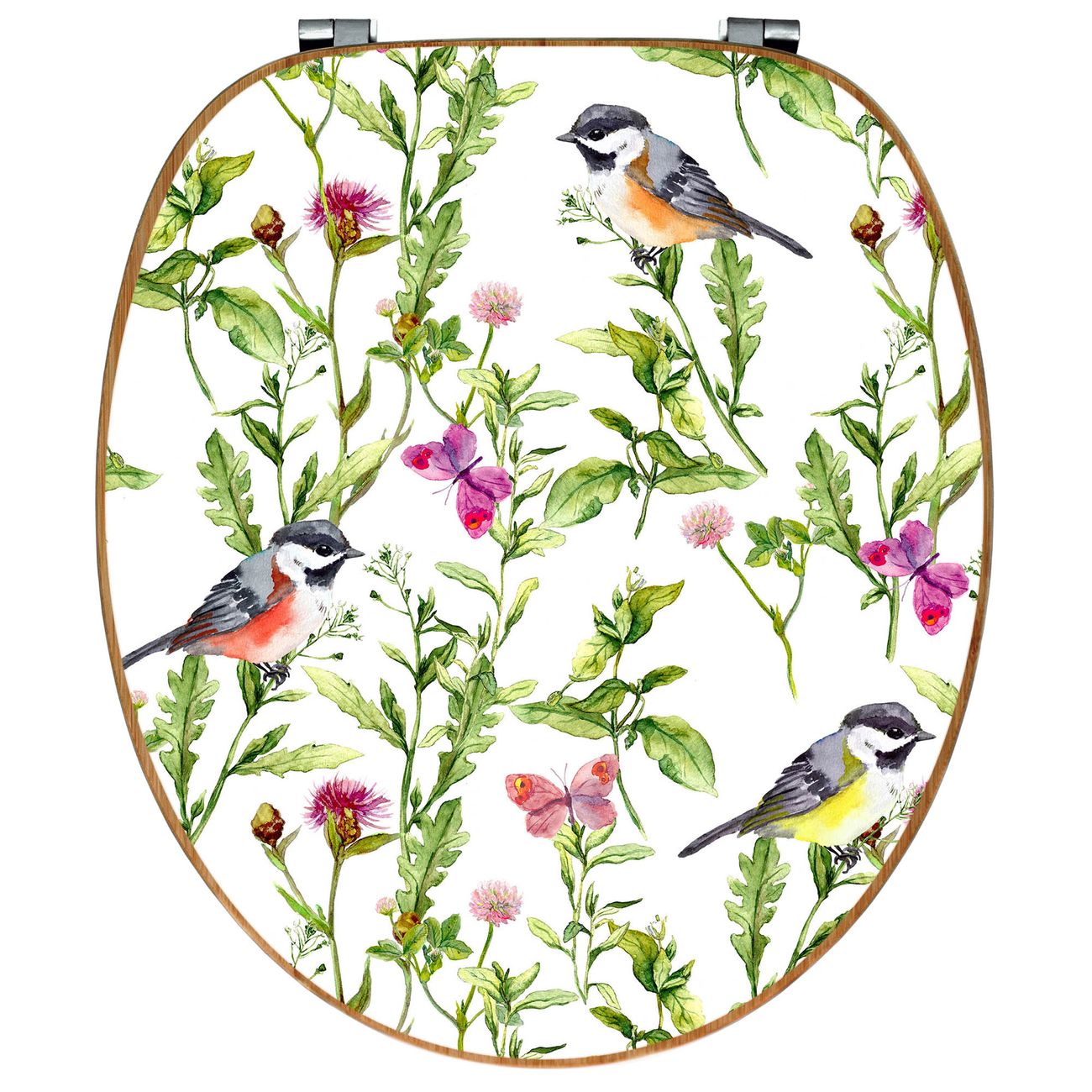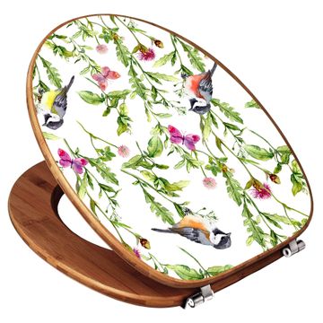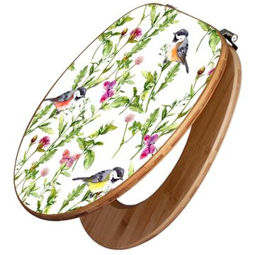 Design WC-Sitz Bambus Holz Motiv Meisen im Klee