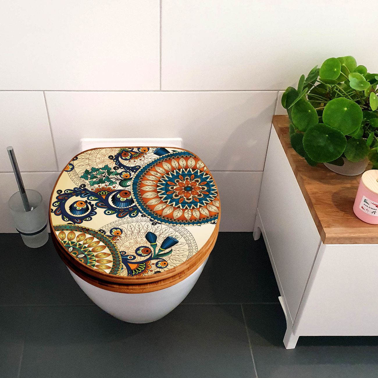 Design WC-Sitz Bambus Holz Motiv Modernes Mandala