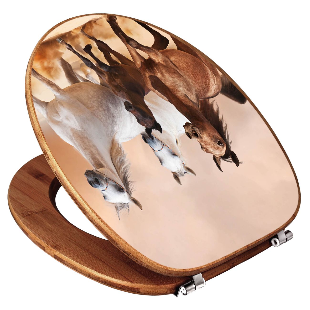 Mit dem banjado Toilettensitz in Bambus verbinden Sie Design und Funktionalität. Sie erhalten den WC-Sitz mit bewährt schwerer Holz Qualität und Universal Scharnieren. Das Motiv Motiv Mongolische Stimmung besteht aus einer schutzlaminierten Motivfolie, die durch das Schutzlaminat zusätzlich vor Kratzern schützt. Durch diesen Motivdruck wird der WC-Sitz zu einem Blickfang in Ihrem Bad.