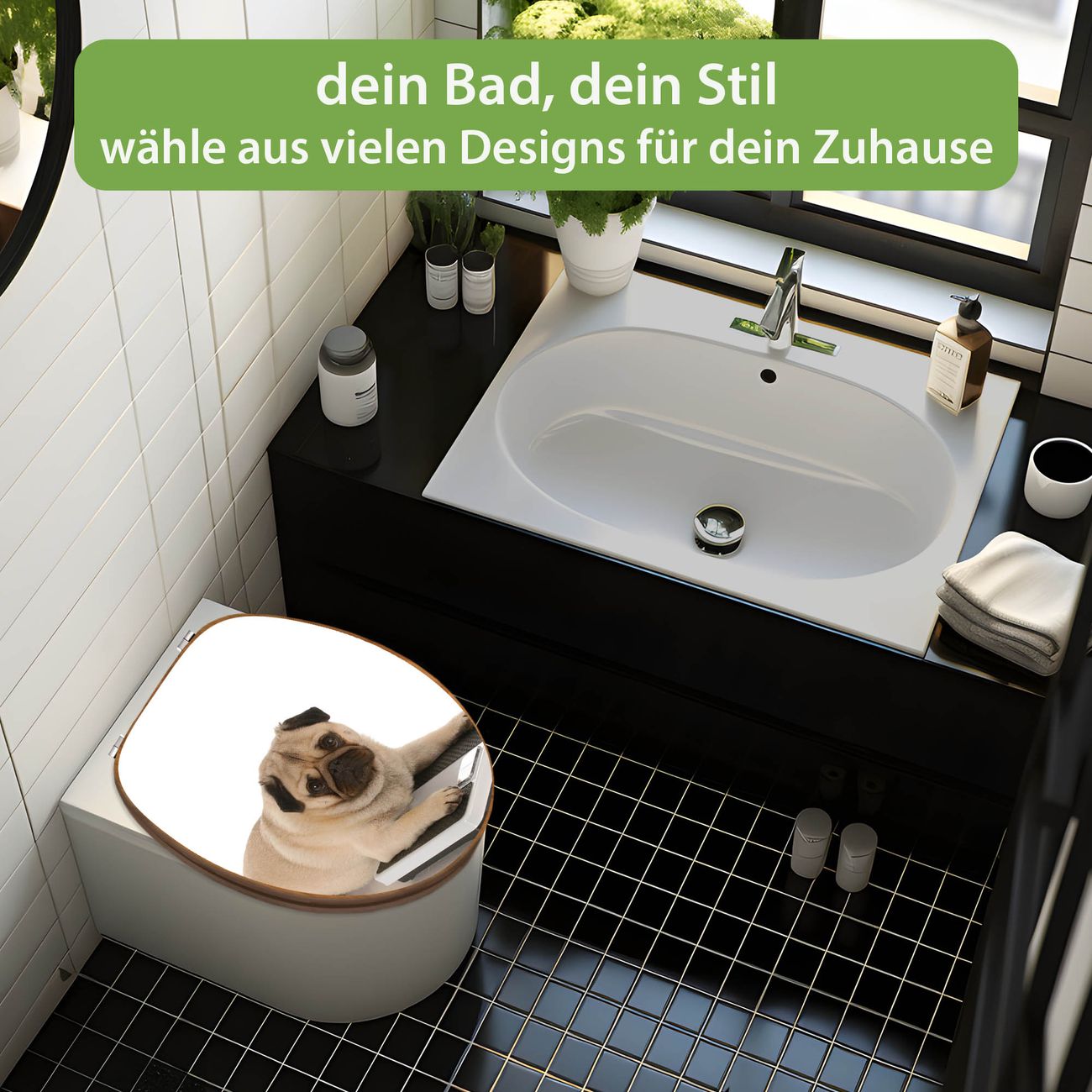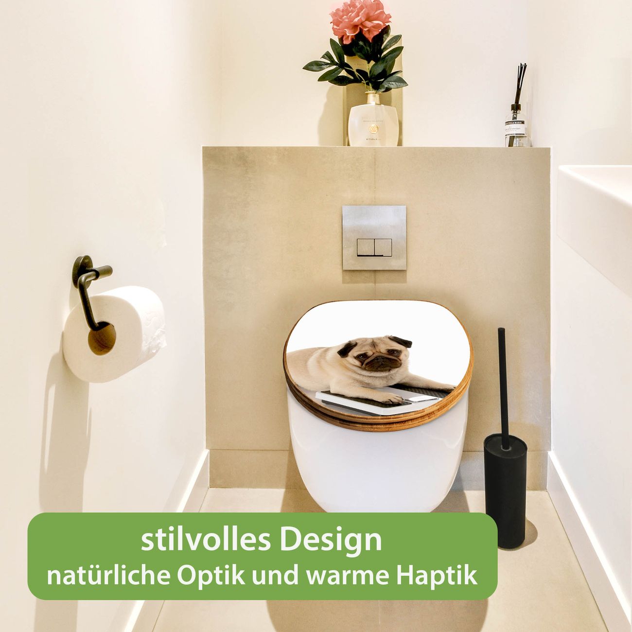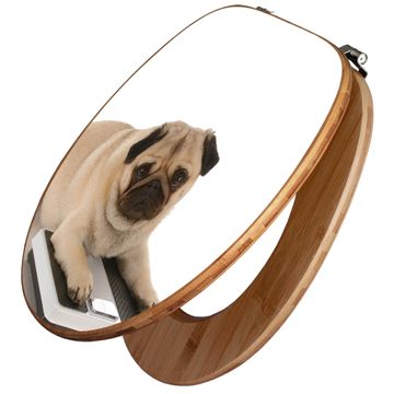 Mit dem banjado Toilettensitz in Bambus verbinden Sie Design und Funktionalität. Sie erhalten den WC-Sitz mit bewährt schwerer Holz Qualität und Universal Scharnieren. Das Motiv Motiv Mops besteht aus einer schutzlaminierten Motivfolie, die durch das Schutzlaminat zusätzlich vor Kratzern schützt. Durch diesen Motivdruck wird der WC-Sitz zu einem Blickfang in Ihrem Bad.