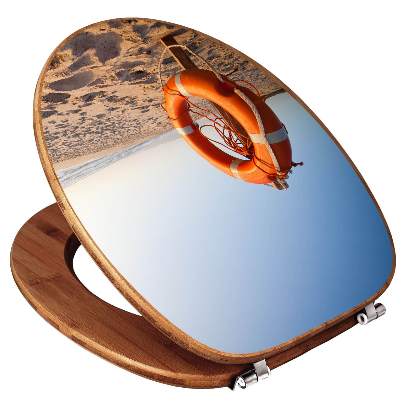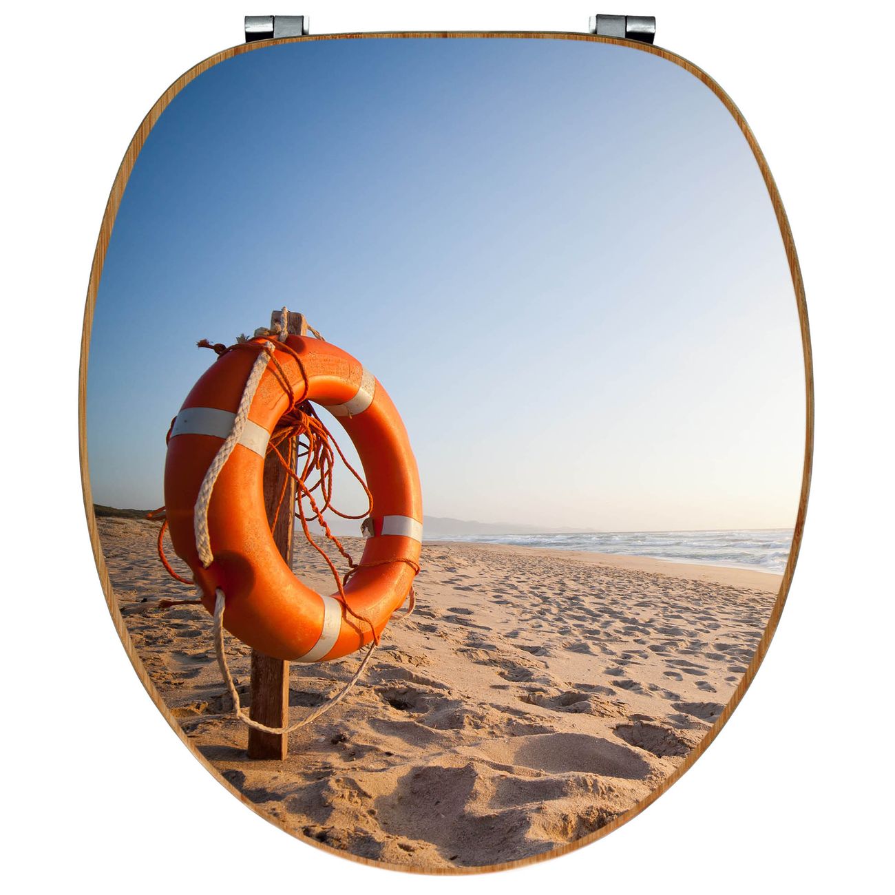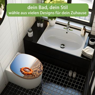 Mit dem banjado Toilettensitz in Bambus verbinden Sie Design und Funktionalität. Sie erhalten den WC-Sitz mit bewährt schwerer Holz Qualität und Universal Scharnieren. Das Motiv Motiv Morgens Am Strand besteht aus einer schutzlaminierten Motivfolie, die durch das Schutzlaminat zusätzlich vor Kratzern schützt. Durch diesen Motivdruck wird der WC-Sitz zu einem Blickfang in Ihrem Bad.