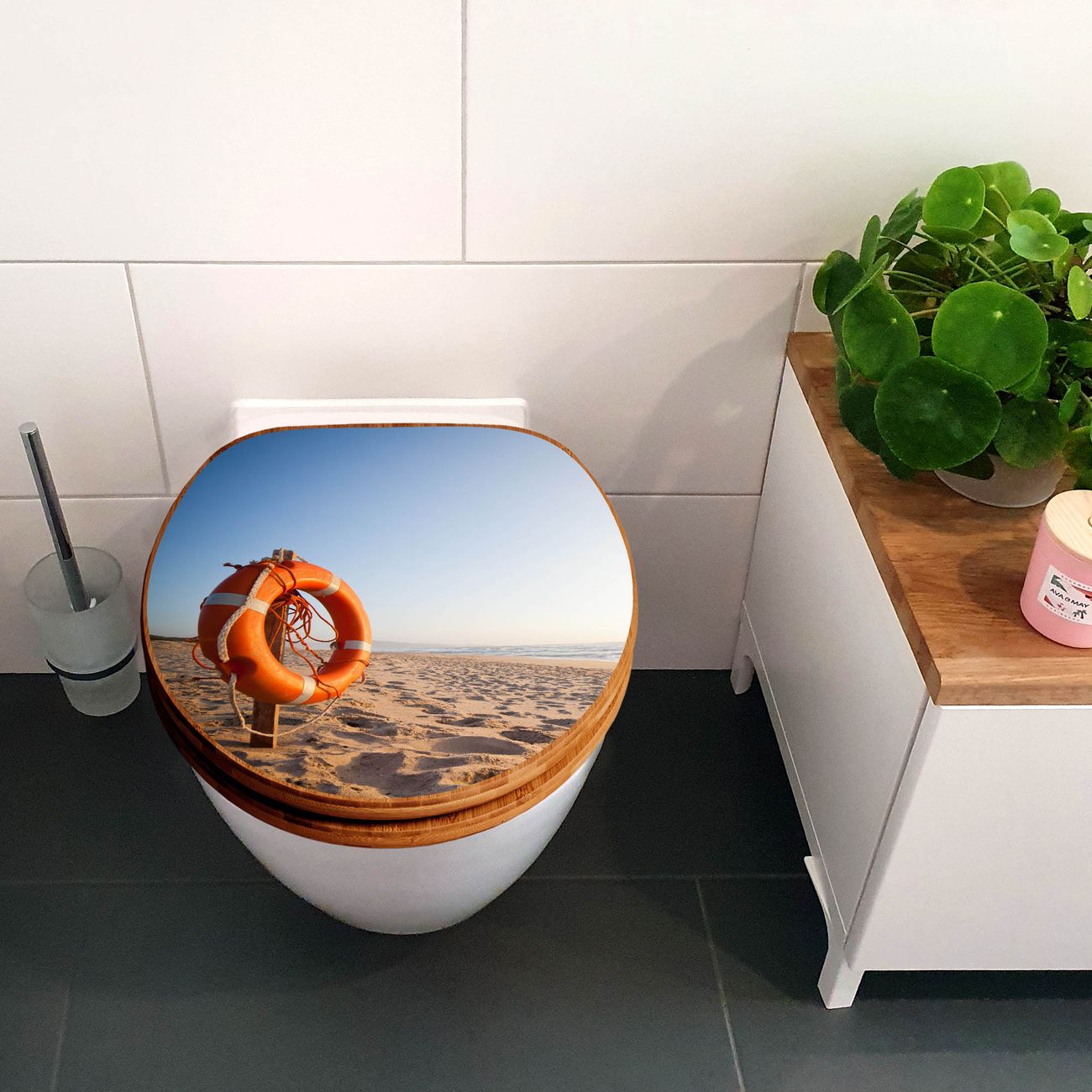 Design WC-Sitz Bambus Holz Motiv Morgens Am Strand