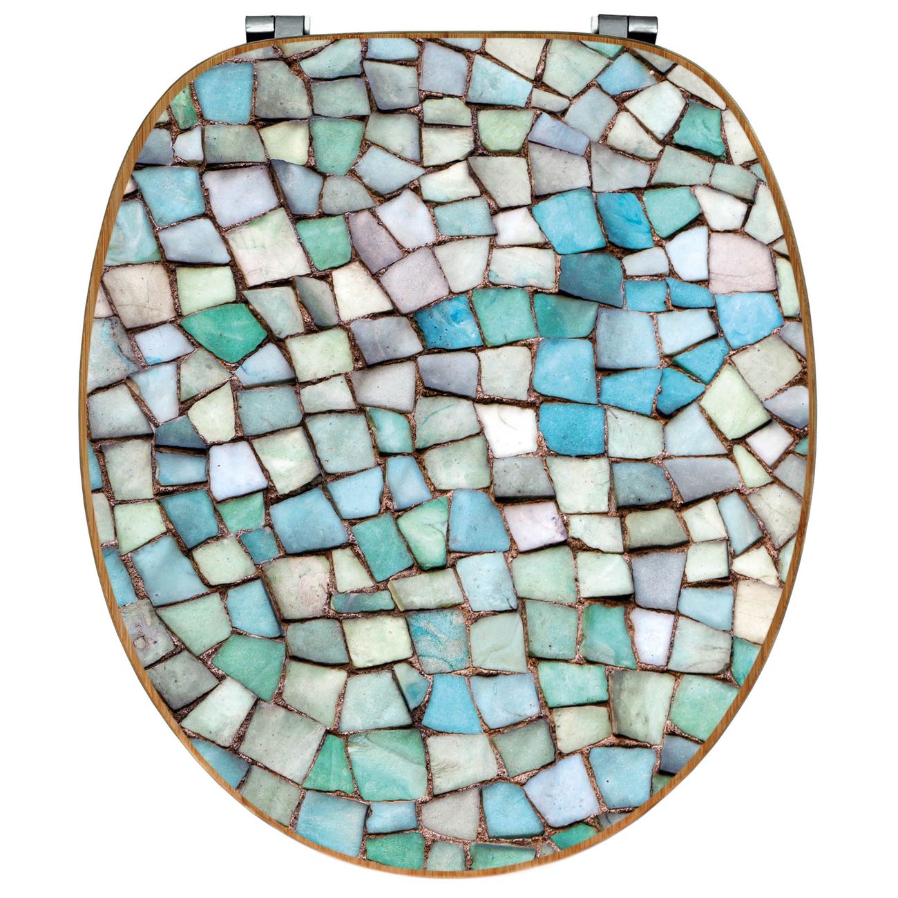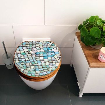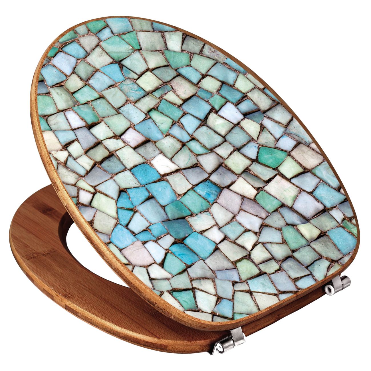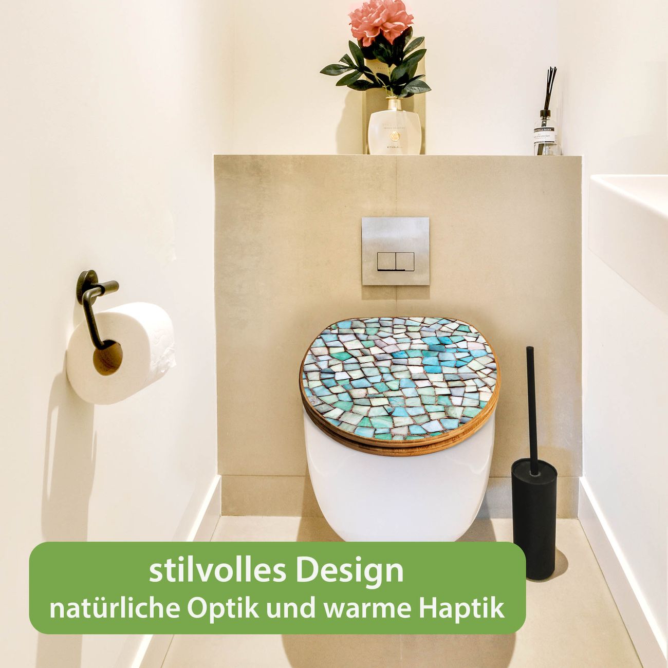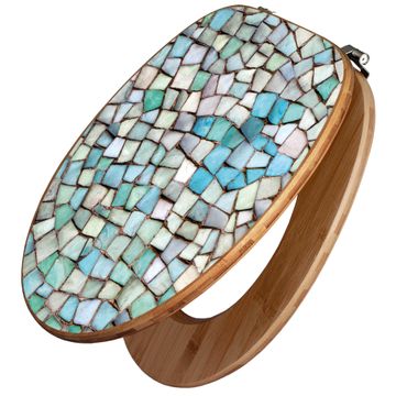 Design WC-Sitz Bambus Holz Motiv Mosaik Blau
