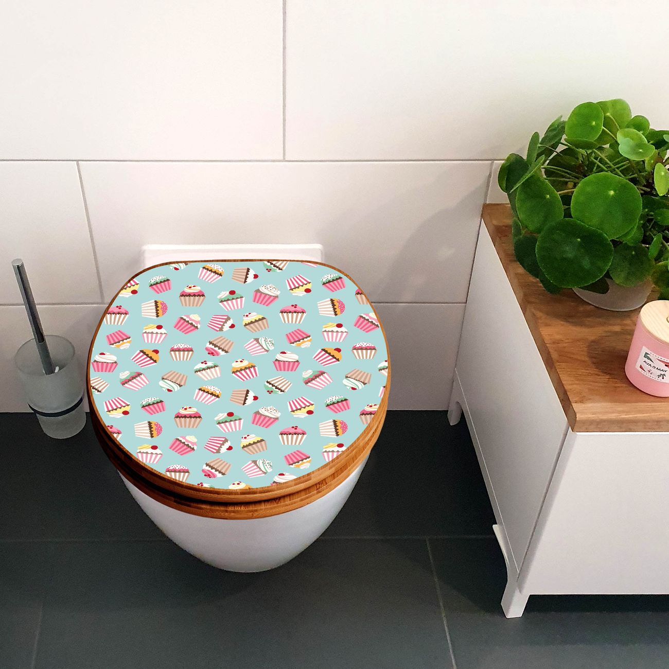 Design WC-Sitz Bambus Holz Motiv Muffins