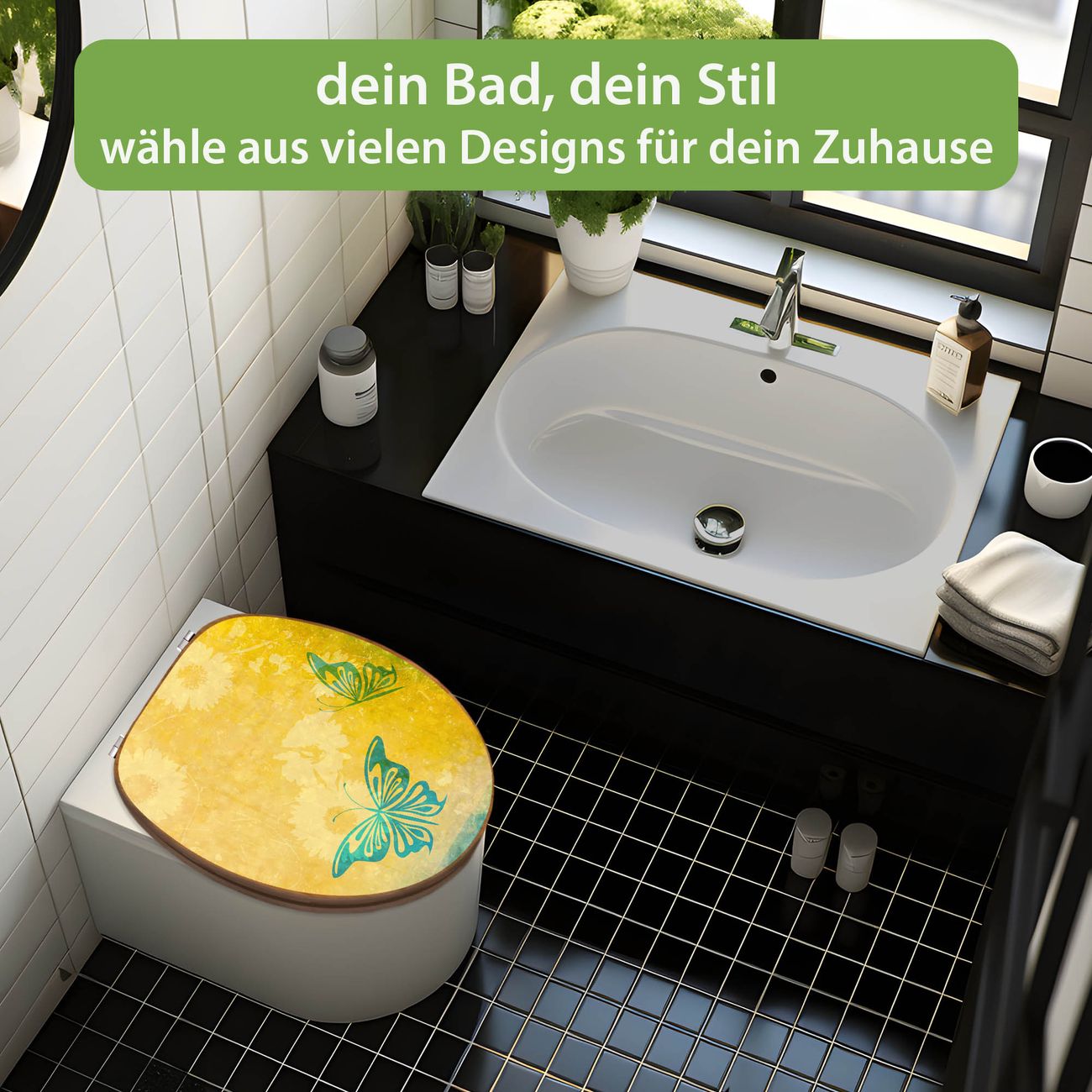 Mit dem banjado Toilettensitz in Bambus verbinden Sie Design und Funktionalität. Sie erhalten den WC-Sitz mit bewährt schwerer Holz Qualität und Universal Scharnieren. Das Motiv Motiv Muster Sommer besteht aus einer schutzlaminierten Motivfolie, die durch das Schutzlaminat zusätzlich vor Kratzern schützt. Durch diesen Motivdruck wird der WC-Sitz zu einem Blickfang in Ihrem Bad.